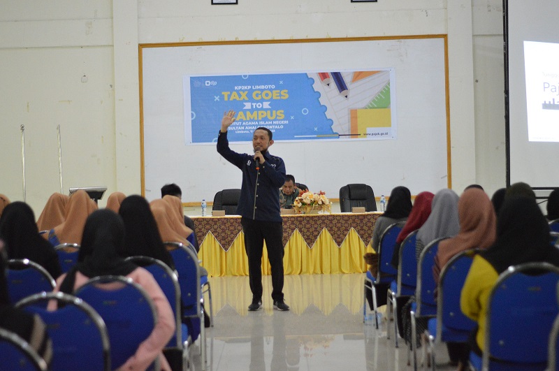 Kantor Pelayanan, Penyuluhan, dan Konsultasi Perpajakan (KP2KP) Limboto memulai kegiatan Tax Goes to Campus (TGTC) tahun 2023 di Institut Agama Islam Negeri (IAIN) Sultan Amai Gorontalo. Kegiatan ini dilaksanakan di Aula Fakultas Ekonomi dan Bisnis Islam (FEBI) IAIN Gorontalo (Rabu, 11/10).