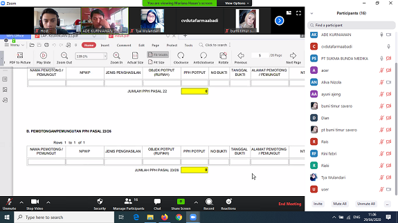 Kelas pajak kali ini dihadiri oleh 14 Wajib Pajak Badan dan disampaikan oleh salah satu Tim Penyuluh KPP Pratama Payakumbuh yaitu Mariana melalui aplikasi Zoom Meeting, sedangkan untuk Tanya Jawab dan kendala yang dihadapi disampaikan melalui aplikasi WhatsApp.
