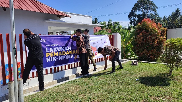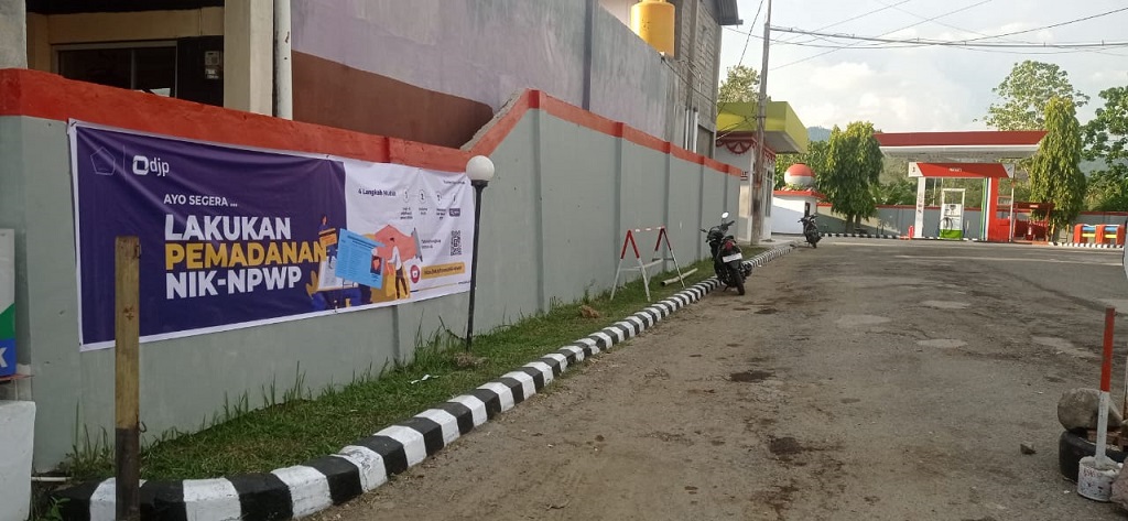 Kantor Pelayanan Penyuluhan dan Konsultasi Perpajakan (KP2KP) Tilamuta memasang spanduk Pemadanan NIK menjadi NPWP di tempat-tempat yang menjadi pusat berkumpulnya masyarakat serta di jalan-jalan protokol (Selasa, 17/1). Kegiatan ini dilaksanakan dengan harapan masyarakat di lingkungan Kabupaten Boalemo mengetahui dan mendukung program pemerintah satu data Indonesia.