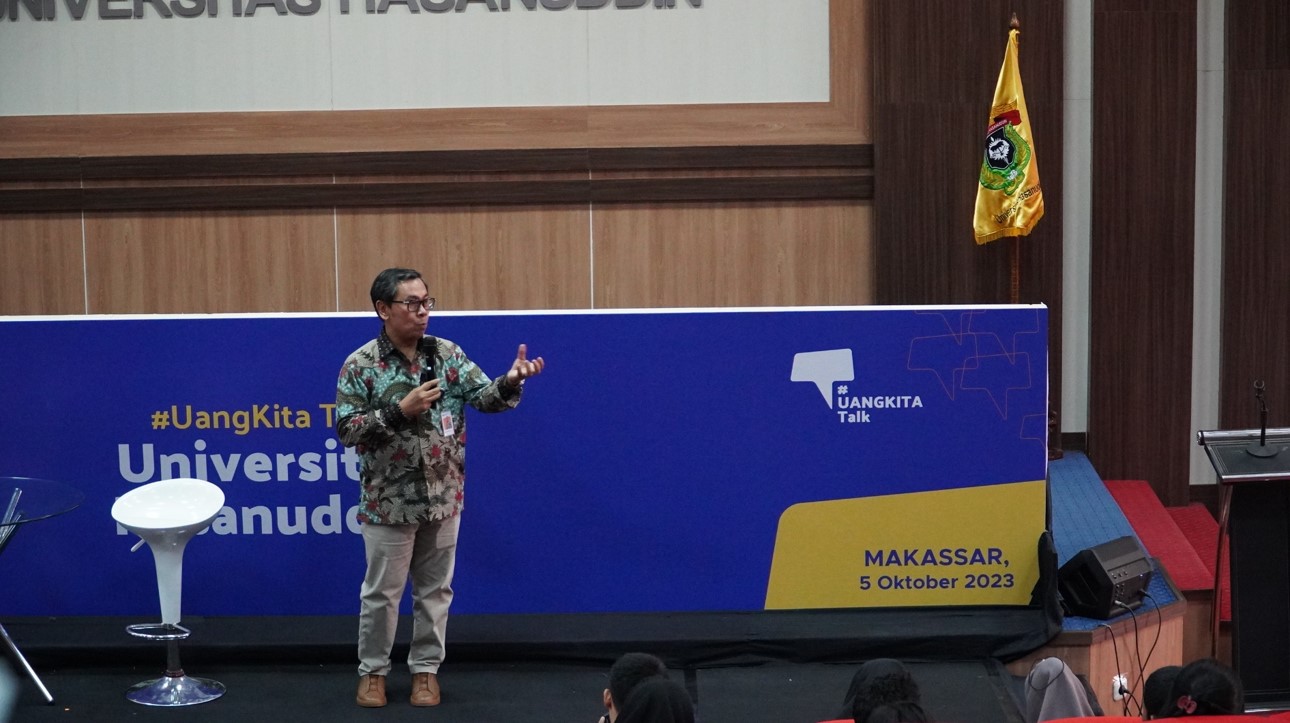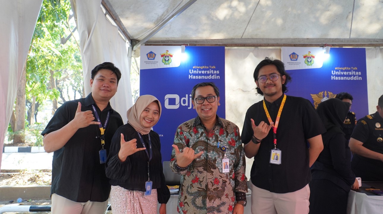 Kantor Wilayah Direktorat Jenderal Pajak Sulawesi Selatan, Barat, dan Tenggara ikut serta dalam kegiatan #UangKita Talk yang diselenggarakan di Aula Baruga Prof. Dr. Baharuddin Lopa, S.H., Fakultas Hukum Universitas Hasanuddin (UNHAS), Jalan Perintis Kemerdekaan KM. 10, Tamalanrea Indah, Tamalenrea, Makassar (Kamis, 5/10).