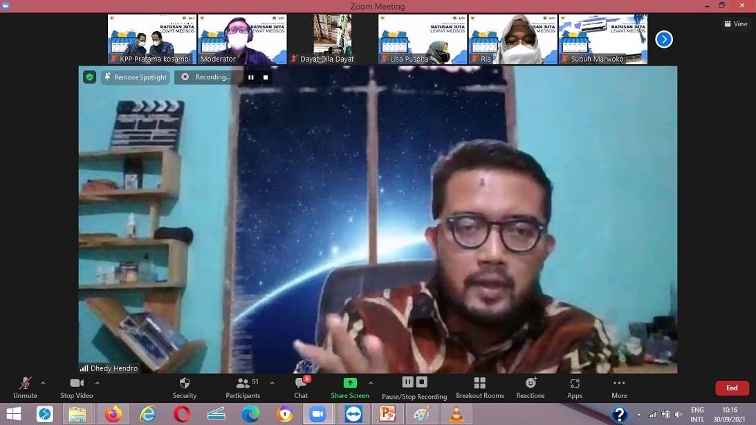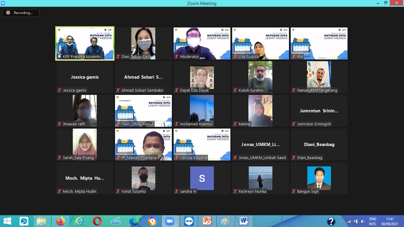 Kantor Pelayanan Pajak (KPP) Pratama Kosambi menyelenggarakan kegiatan Business Development Services (BDS) dengan tema “Mendulang Omzet Ratusan Juta Lewat Medsos” secara daring melalui aplikasi Zoom Meeting dari KPP Pratama Kosambi, Tangerang (Kamis, 30/9). Kegiatan ini menghadiran pemilik usaha furnitur Sebat Project Dhedy Hendro sebagai narasumber.