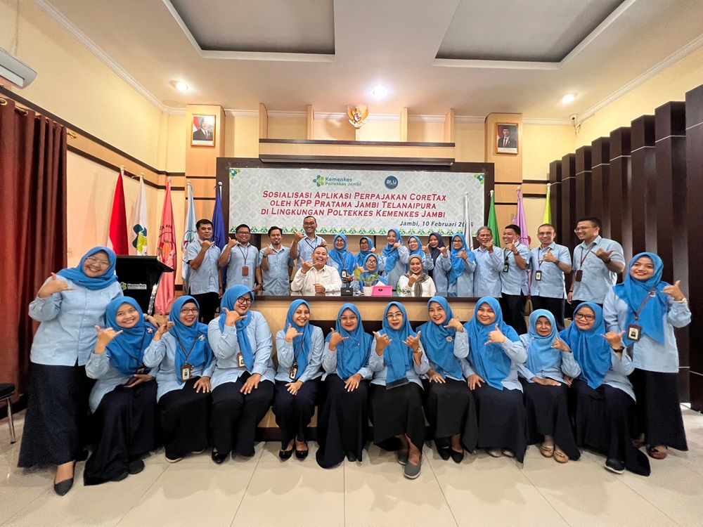 Kantor Pelayanan Pajak (KPP) Pratama Jambi Telanaipura hadir menjadi narasumber dalam sosialisasi Core Tax Administration System (Coretax DJP) bagi Wajib Pajak Instansi Pemerintah yang diselenggarakan oleh Poltekkes Kemenkes Jambi. Kegiatan ini berlangsung di Aula Poltekkes Kemenkes Jambi, Kota Jambi (Senin, 10/2). Sosialisasi ini dihadiri oleh perwakilan dari berbagai unit kerja di lingkungan Poltekkes Kemenkes Jambi.