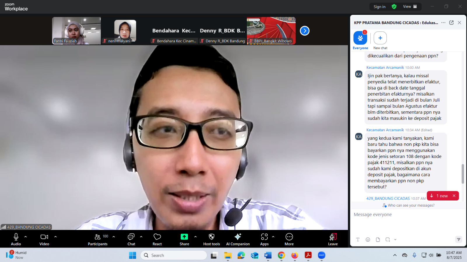 Kantor Pelayanan Pajak (KPP) Pratama Bandung Cicadas menggelar Sosialisasi Coretax DJP kepada wajib pajak instansi pemerintah secara daring. Kegiatan sosialisasi ini dilaksanakan untuk meningkatkan pemahaman wajib pajak instansi pemerintah Kota Bandung di lingkungan KPP Pratama Bandung Cicadas akan Coretax DJP (Kamis, 7/8).