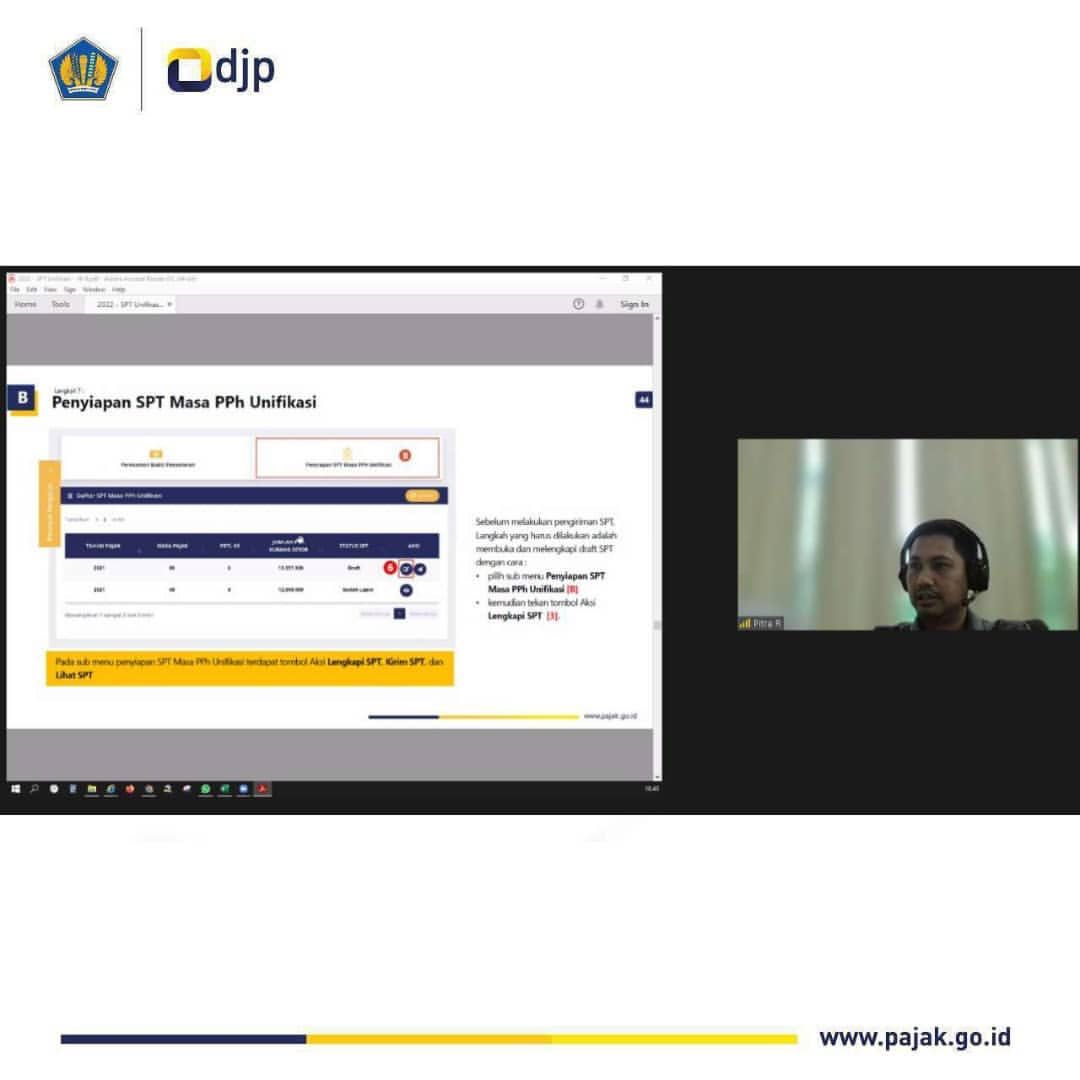Kantor Pelayanan Pajak (KPP) Pratama Batam Selatan menyelenggarakan kelas pajak daring dengan materi elektronik Bukti Potong (e-Bupot) Unifikasi yang dihadiri oleh wajib pajak KPP Pratama Batam Selatan di Batam (Kamis, 2/6).