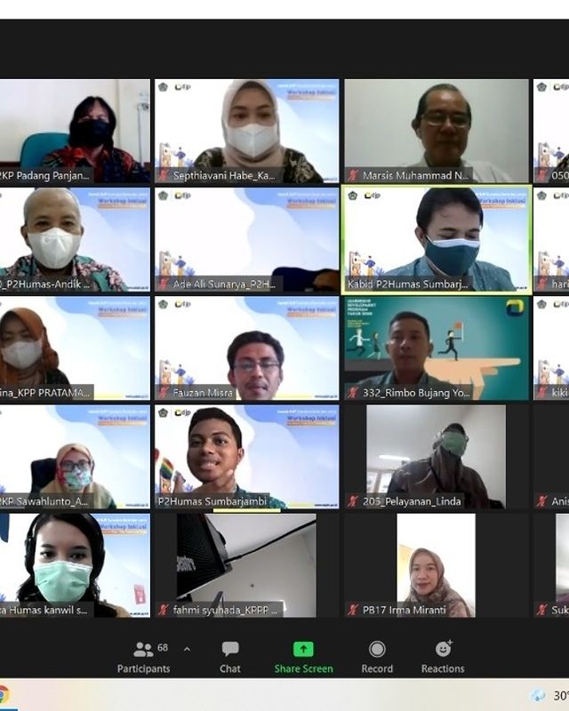 Kantor Wilayah Direktorat Jenderal Pajak (Kanwil DJP) Sumatera Barat dan Jambi mengadakan acara lokakarya (workshop) Inklusi Kesadaran Pajak bagi civitas akademika dari berbagai perguruan tinggi di wilayah Sumatera Barat dan Jambi secara daring (Selasa, 3/8).