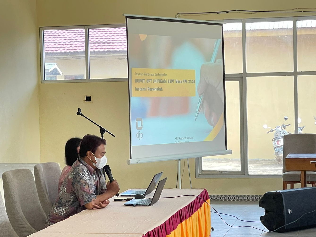 Kantor Pelayanan Pajak (KPP) Pratama Bontang bersama Kantor Pelayanan, Penyuluhan, dan Konsultasi Perpajakan (KP2KP) Sangatta menggelar Sosialisasi Pelaporan SPT Unifikasi bagi Bendahara Pemerintah di Kecamatan Muara Wahau bertempat di Aula Kecamatan Muara Wahau, Kabupaten Kutai Timur (Selasa, 19/4).