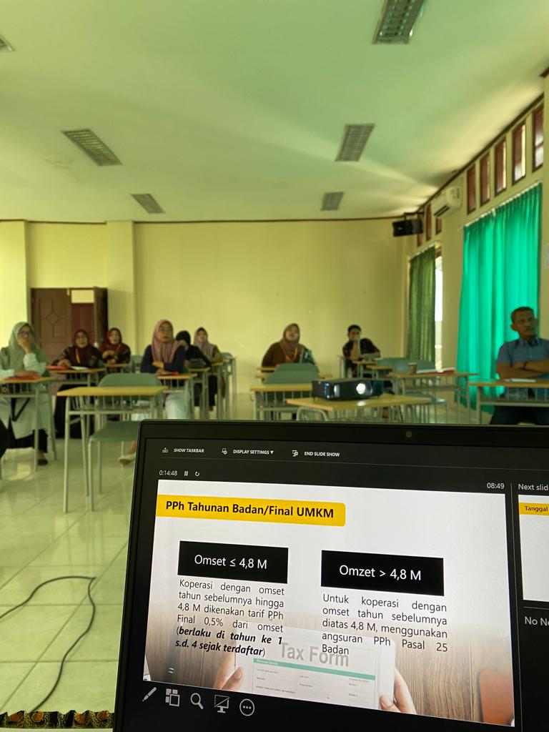 Materi disampaikan oleh narasumber dari Fungsional Penyuluh Pajak Muhammad Ihsan. Dalam sesi ini, Ihsan menyampaikan semua aspek perpajakan baik UMKM maupun Koperasi.