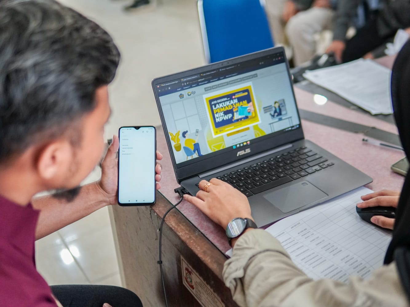 Selain menjelaskan tata cara pelaporan SPT Tahunan melalui E-filing dan pemadanan NIK menjadi NPWP melalui DJP Online, Penyuluh Pajak KPP Pratama Makassar Selatan juga memberikan layanan Aktivasi EFIN (Electronik Filling Identification Number) kepada para peserta kegiatan asistensi yang belum memiliki EFIN.