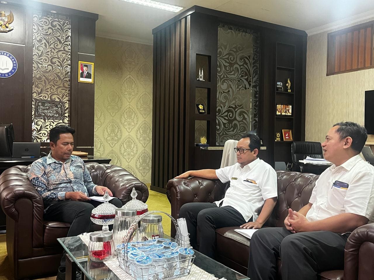 Kepala Kantor Pelayanan Pajak (KPP) Pratama Garut, Tata Nugraha bersama Kepala Seksi Pengawasan I, Yohanes Bambang Sugiarto melakukan kunjungan kerja ke Universitas Garut (Uniga). Hal tersebut dilakukan dalam rangka diskusi dan audiensi terkait pengelolaan Tax Center Uniga, Garut (Senin, 10/3).