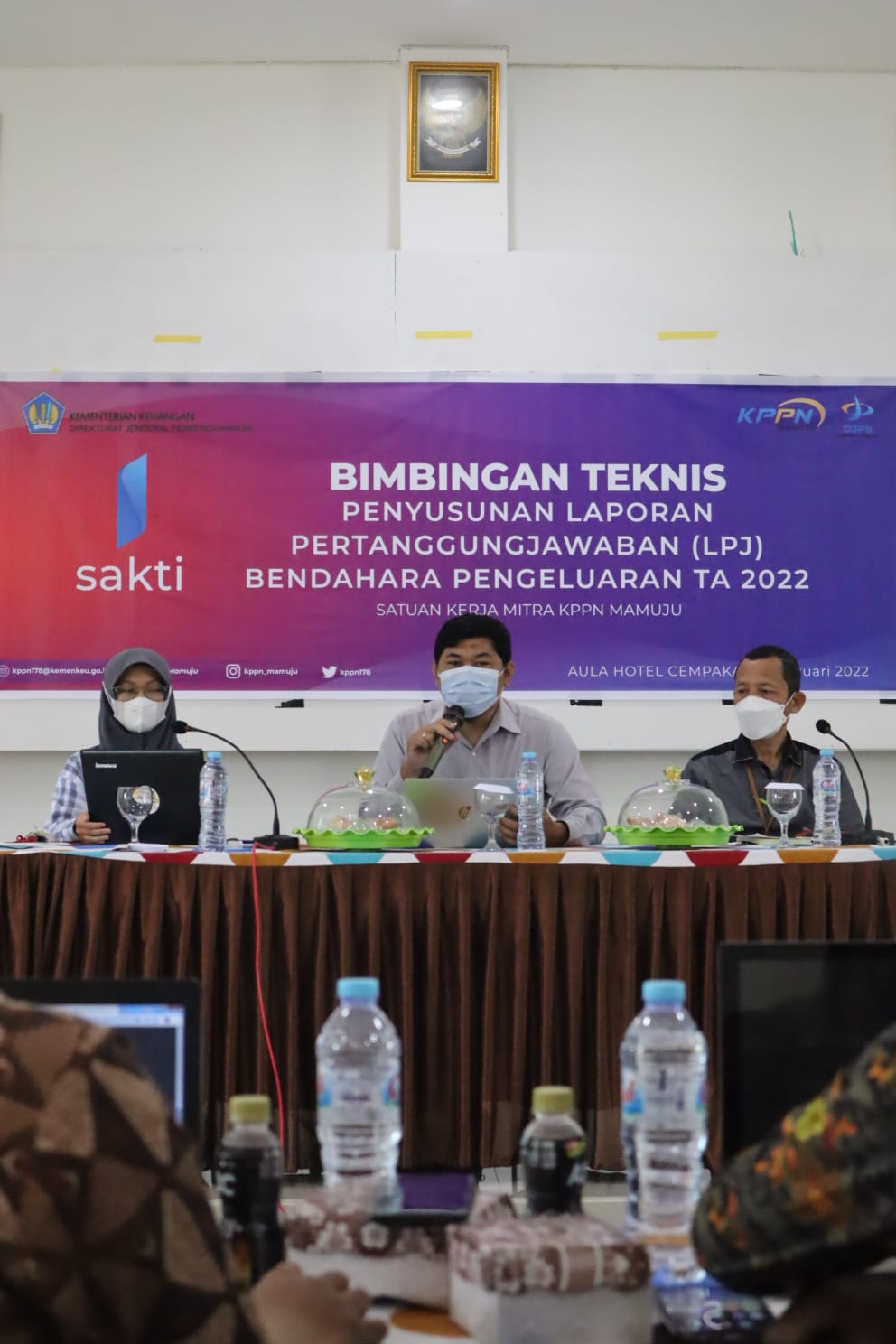 Kantor Pelayanan Pajak (KPP) Pratama Mamuju memberikan Sosialisasi Aplikasi e-Bupot Unifikasi Instansi Pemerintah dalam acara Bimtek Penyusunan Laporan Pertanggungjawaban Bendahara Pengeluaran TA 2022 yang diselenggarakan oleh KPPN Mamuju di Aula Hotel Cempaka, Kab. Mamuju (Kamis, 17/2).