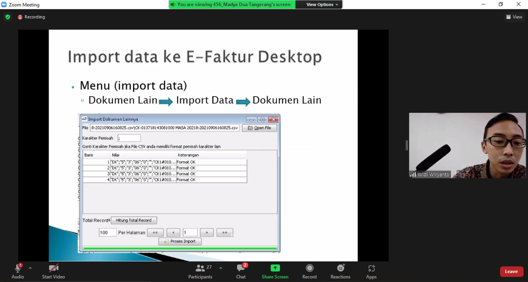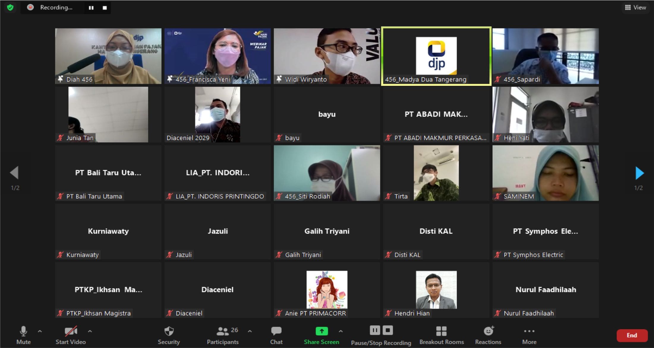 Kantor Pelayanan Pajak (KPP) Madya Dua Tangerang mengadakan kelas pajak yang diikuti oleh 20 peserta dengan tema Prepopulated PEB & CK-1 melalui aplikasi zoom di KPP Madya Dua Tangerang, Kota Tangerang (Jumat, 26/11).