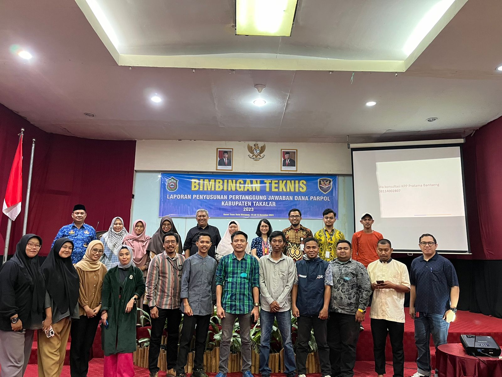 Kantor Pelayanan, Penyuluhan, dan Konsultasi Perpajakan (KP2KP) Takalar menghadiri undangan acara Bimbingan Teknis Penyusunan Laporan Pertanggungjawaban Dana Partai Politik Lingkup Pemerintah Kabupaten Takalar yang yang diadakan oleh Badan Kesatuan Bangsa dan Politik Kabupaten Takalar bertempat di Kenari Tower Hotel, Jalan Yosep Latumahina Nomor 30, Kelurahan Losari, Kecamatan Ujung Pandang, Kota Makassar (Jumat, 10/11).