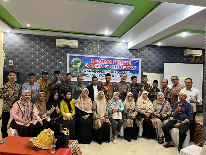 Kepala Kantor Pelayanan, Penyuluhan, dan Konsultasi Perpajakan (KP2KP) Sengkang Riza Kurniawan menghadiri acara pelatihan perpajakan yang diadakan oleh Dinas Koperasi dan UMKM Wajo yang digelar di Hotel Pusfa, Jalan Beringin, Sengkang (Jumat, 11/5). Kegiatan pelatihan ini dihadiri oleh 30 koperasi yang berlokasi di seluruh Kecamatan Tempe.