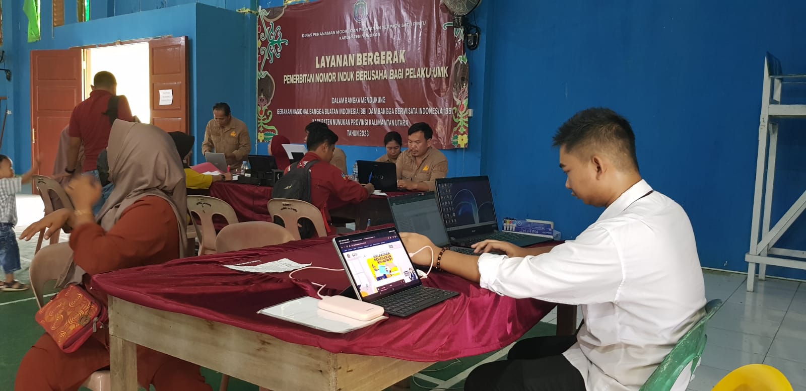 Dinas Penanaman Modal dan Pelayanan Terpadu Satu Pintu (DPMPTSP) Kabupaten Nunukan menghadirkan Layanan Bergerak Penerbitan Nomor Induk Berusaha (NIB) Bagi Pelaku Usaha Mikro, Kecil, dan Menengah (UMKM) pengusaha wilayah III yang turut menggandeng Kantor Pelayanan, Penyuluhan, dan Konsultasi Perpajakan (KP2KP) Nunukan di Kec. Sebuku, Kab. Nunukan (Senin, 22/5).