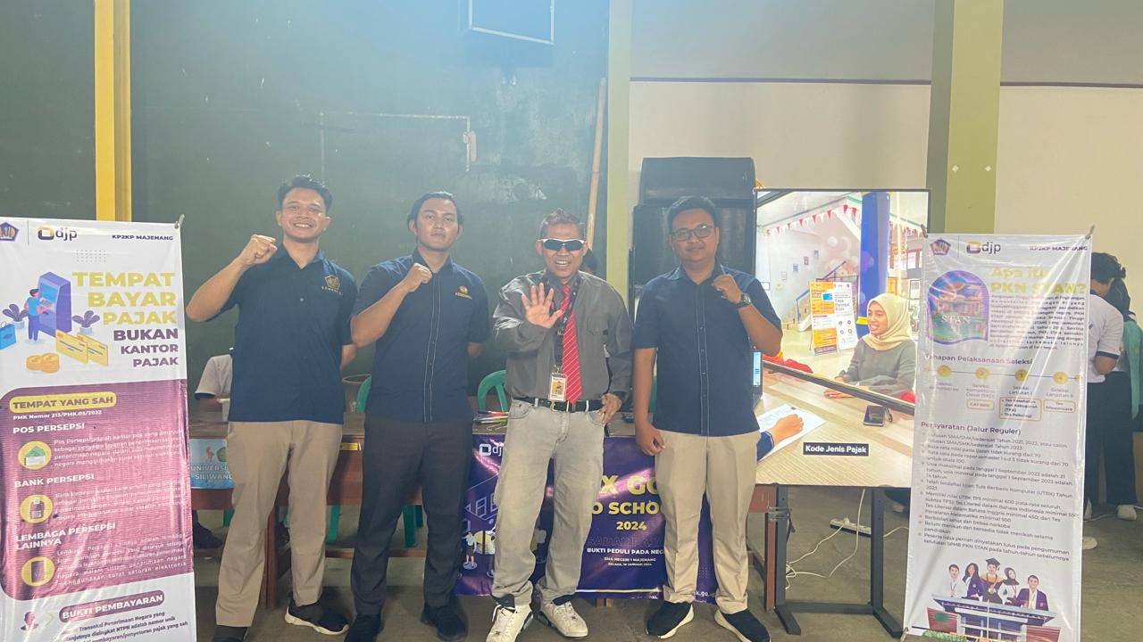 Kantor Pelayanan, Penyuluhan, dan Konsultasi Perpajakan (KP2KP) Majenang menyelenggarakan kegiatan tax goes to school (TGTS) di Sekolah Menengah Atas Negeri (SMAN) 1 Majenang (Selasa, 5/3). Kegiatan dilaksanakan dalam rangka mengenalkan perpajakan sejak dini kepada seluruh siswa dan siswi SMAN 1 Majenang. Kegiatan dilaksanakan di Gelanggang Olahraga (GOR) SMAN 1 Majenang dengan dihadiri 500 peserta dari berbagai sekolah.