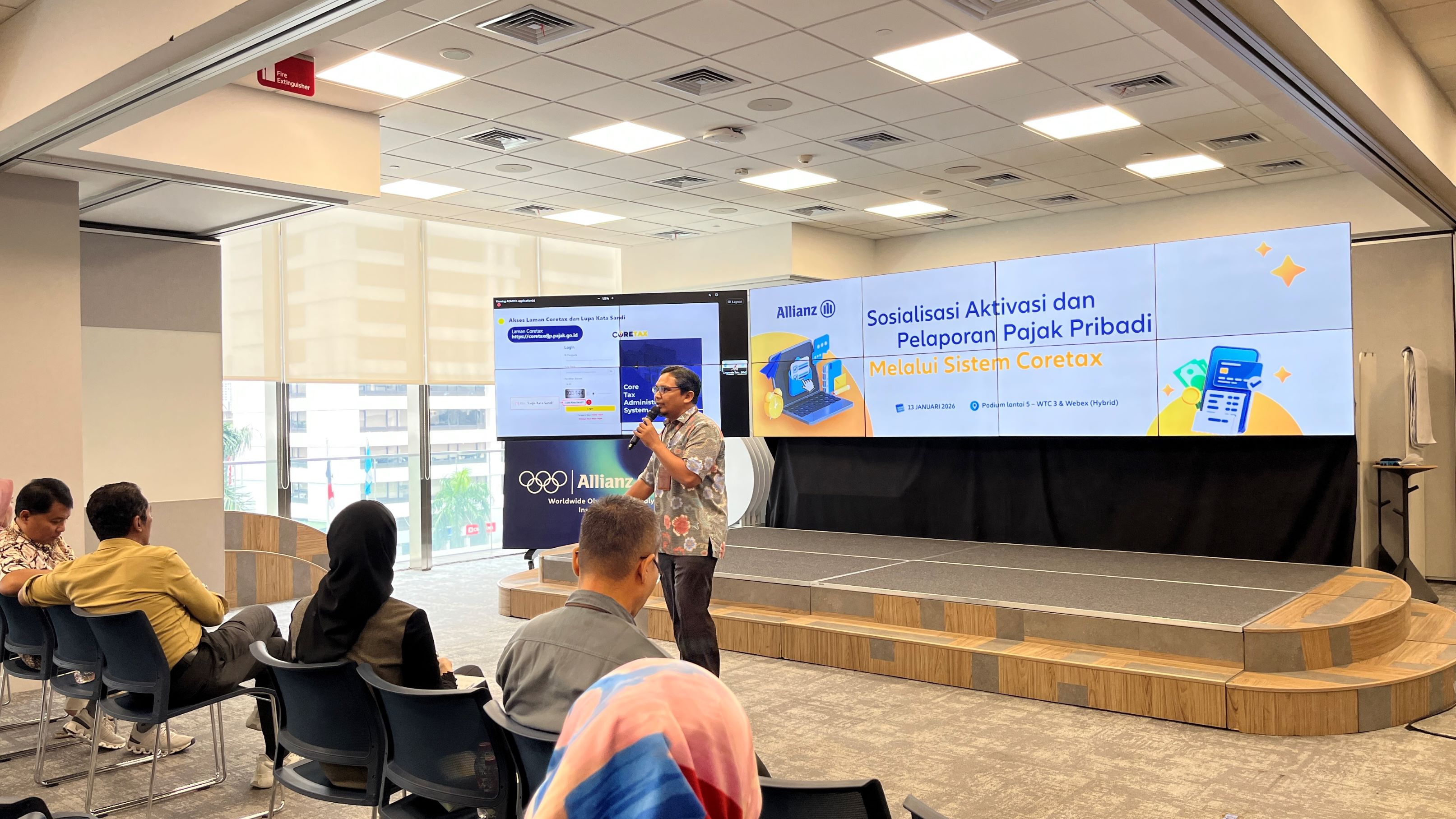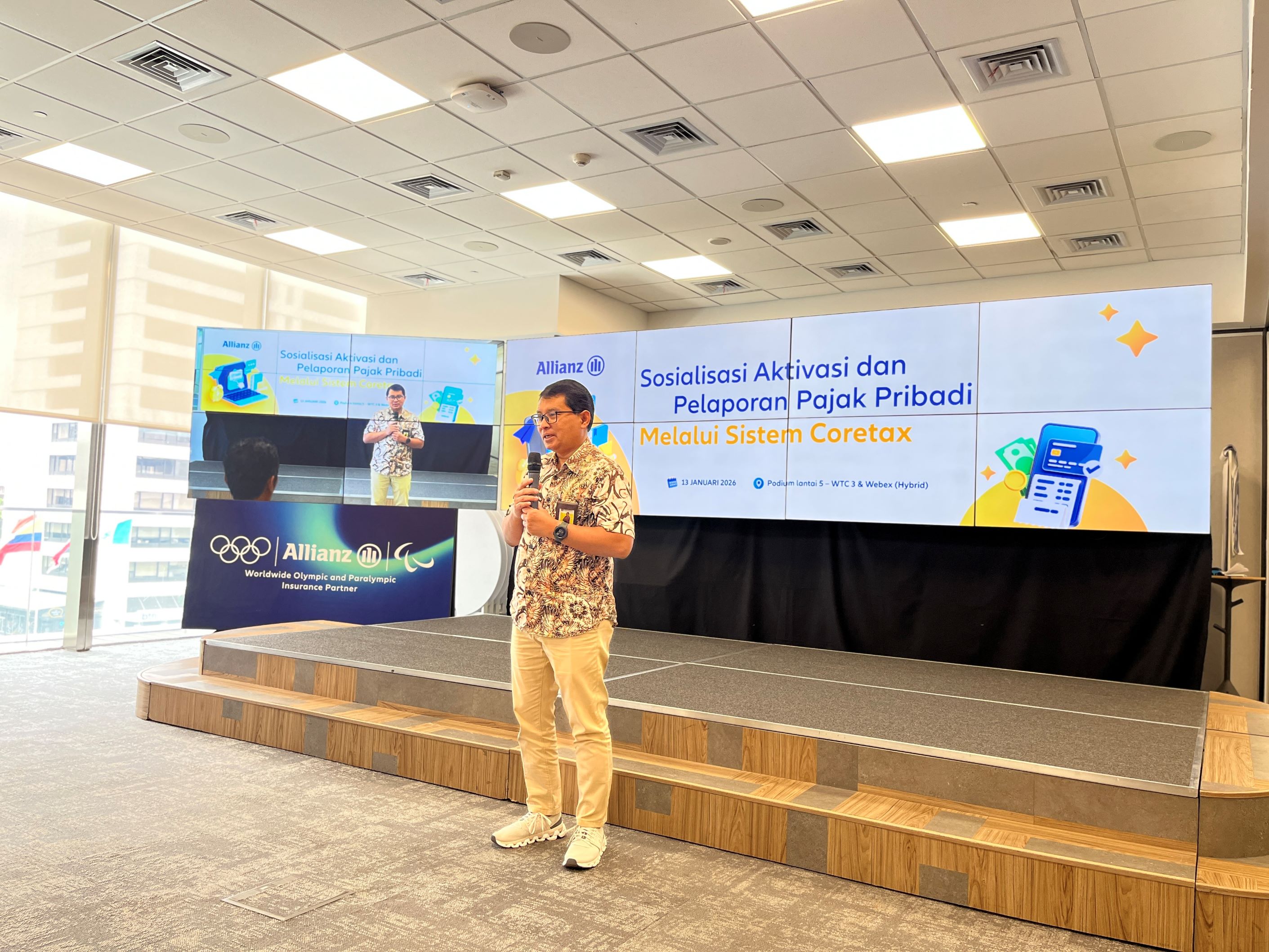 Sebanyak kurang lebih seribu pegawai PT Asuransi Allianz Life Indonesia mengikuti kegiatan edukasi Coretax yang berlangsung secara hybrid pada Selasa (13/1) di Ruang Podium Lantai 5, World Trade Center 5, Jakarta Selatan. Disampaikan oleh Lidia Sari selaku perwakilan perusahaan, tidak kurang dari 200 pegawai mengikuti kegiatan secara luring sementara sisanya bergabung secara daring.