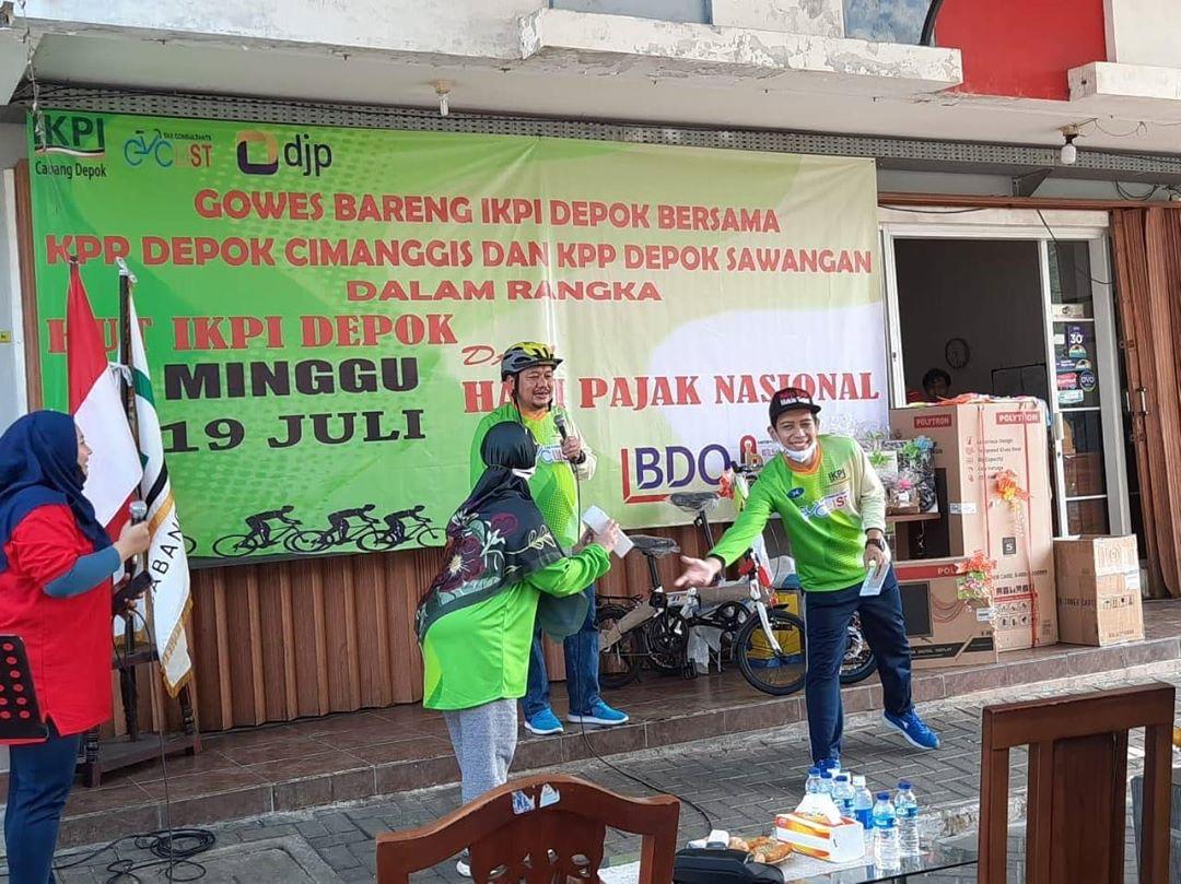 KPP Pratama Depok Sawangan dan KPP Pratama Depok Cimanggis mengadakan sosialisasi insentif pajak kepada pelaku UMKM yang dirangkaikan dengan gowes bersama Ikatan Konsultan Pajak Indonesia (IKPI) Cabang Depok, bertempat di Perumahan Telaga Sawangan, Kota Depok (Minggu, 19/7).