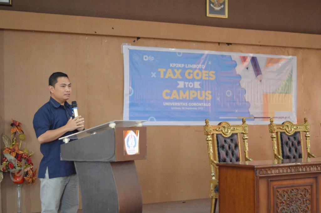 Kantor Pelayanan Penyuluhan dan Konsultasi Perpajakan (KP2KP) Limboto laksanakan kegiatan Tax Goes to Campus (TGTC) Tahun 2023 di Universitas Gorontalo. Kegiatan ini dilaksanakan di aula Fakultas Ekonomi Universitas Gorontalo (Rabu, 8/9).