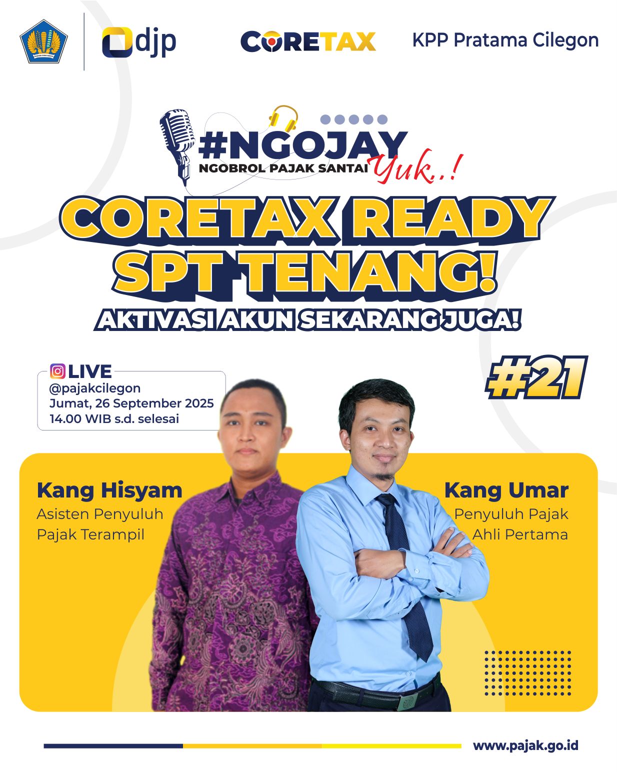 Kantor Pelayanan Pajak (KPP) Pratama Cilegon menggelar siniar Ngojay (Ngobrol Pajak Santai Yuk) Episode 21 bertajuk “Coretax Ready, SPT Tenang!” (Jumat, 26/9).