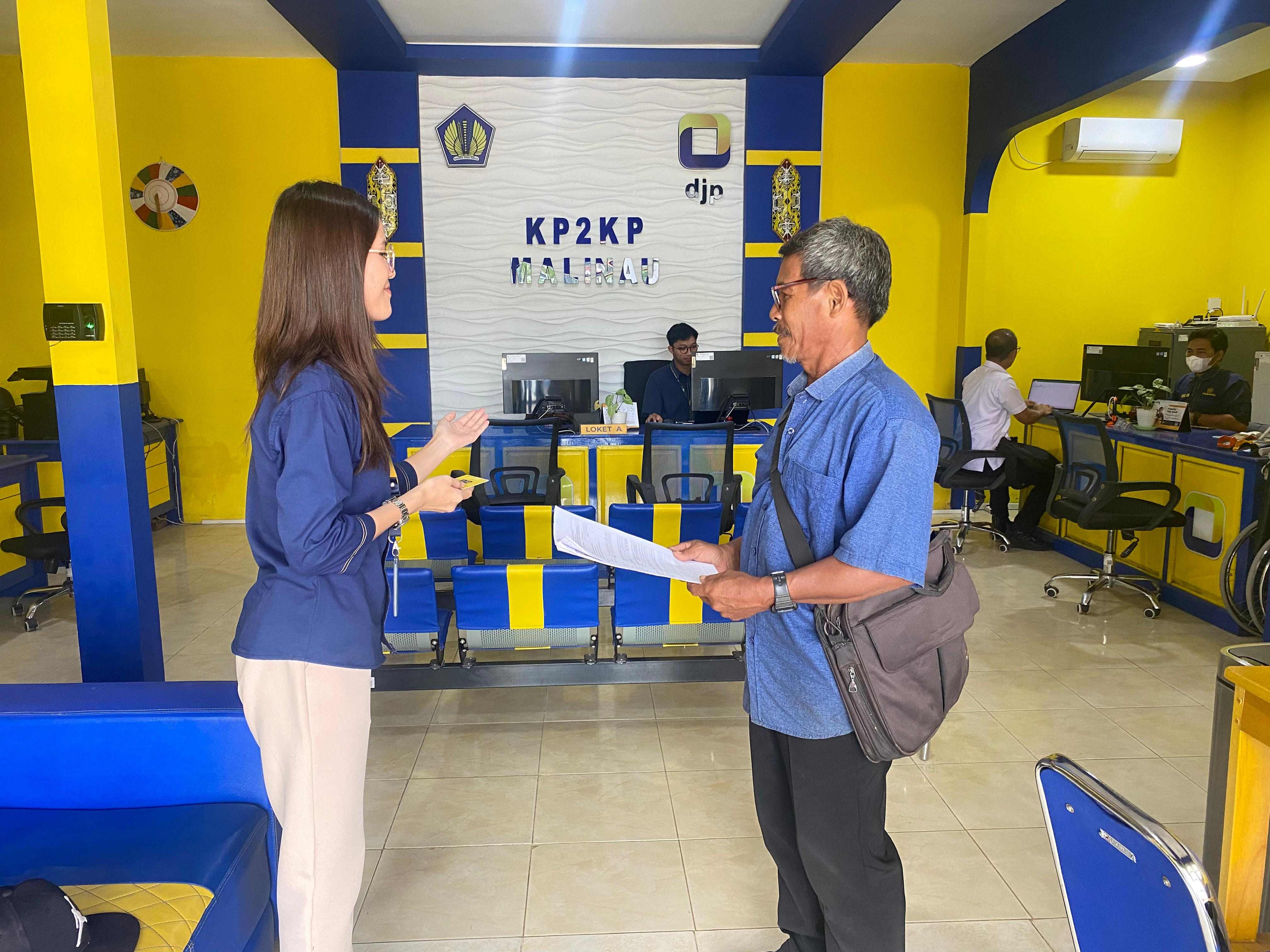 Kantor Pelayanan, Penyuluhan, dan Konsultasi Perpajakan (KP2KP) Malinau menerima kunjungan Daeng Lahi, seorang wajib pajak dari wilayah perbatasan Nunukan, yang ingin mengurus administrasi perpajakan, terutama pendaftaran Nomor Pokok Wajib Pajak (NPWP) di Kab. Malinau (Rabu, 30/10).