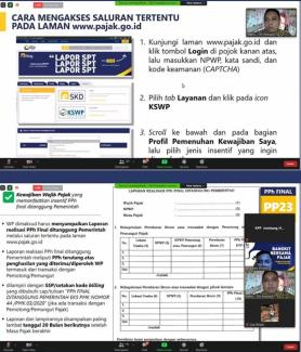 Tim Penyuluh Perpajakan Kantor Pelayanan Pajak (KPP) Pratama Jombang berkesempatan menjadi pemateri dalam acara bertajuk Web Seminar (Webinar) Nasional bagi Pegiat Usaha Mikro, Kecil, dan Menengah (UMKM) yang digagas oleh Tax Center Dewantara Jombang menggunakan tiga media sekaligus, yakni aplikasi Zoom Meeting, YouTube Live, serta Telegram di Jombang (Sabtu, 18/7).