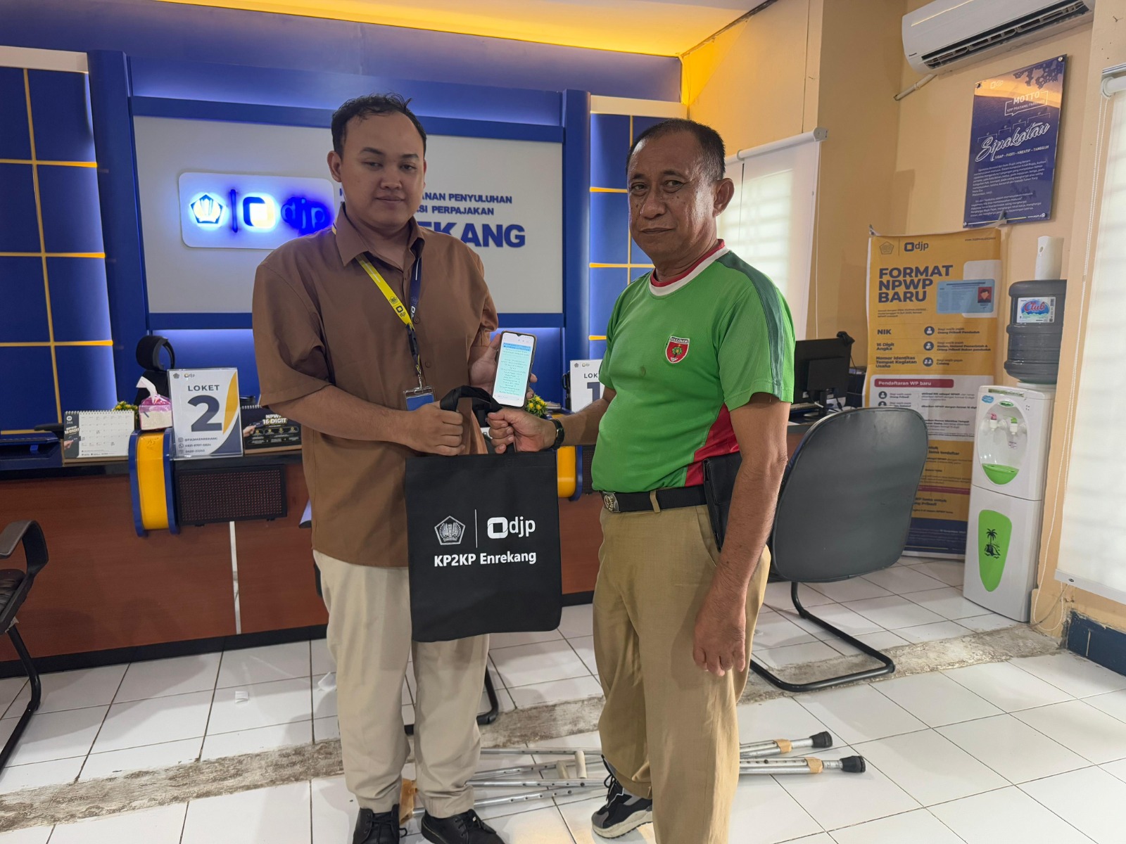 Petugas TPT KP2KP Enrekang, Dodik Pratama, menyampaikan apresiasi atas kedisiplinan tinggi yang ditunjukkan Syamsuddin. “Semangat dan kedisiplinan yang ditunjukkan beliau menjadi motivasi bagi kita semua. Meskipun harus menggunakan alat bantu jalan (kruk), beliau tetap menunjukkan kepatuhan pajak yang luar biasa,” ujar Dodik.