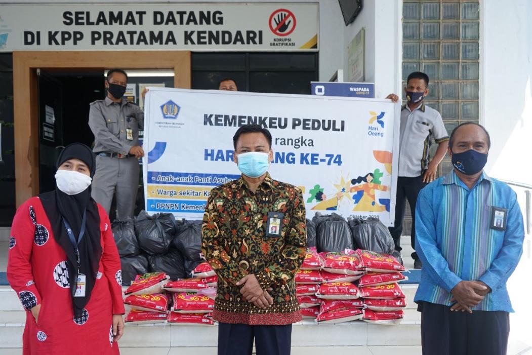 Kantor Pelayanan Pajak (KPP) Pratama Kendari melakukan kegiatan sosial berupa penyaluran paket berisi sembako kepada pegawai tidak tetap dan masyarakat di sekitar lingkungan kantor di Kota Kendari (Selasa, 20/10). Kegiatan ini merupakan bagian dari rangkaian kegiatan peringatan Hari Oeang Republik Indonesia ke-74.