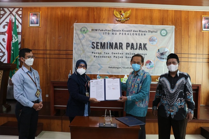 Kantor Wilayah Direktorat Jenderal Pajak (Kanwil DJP) Jawa Tengah I bersama dengan Institut Teknologi dan Sains Nahdlatul Ulama (ITSNU) Pekalongan menandatangani Kesepakatan Bersama Kerja Sama Tax Center di Ruang Aula Lantai 3 ITSNU Pekalongan, Kota Pekalongan (Rabu, 13/7). Kegiatan ini dilanjutkan dengan peresmian Ruang Tax Center ITS NU Pekalongan.