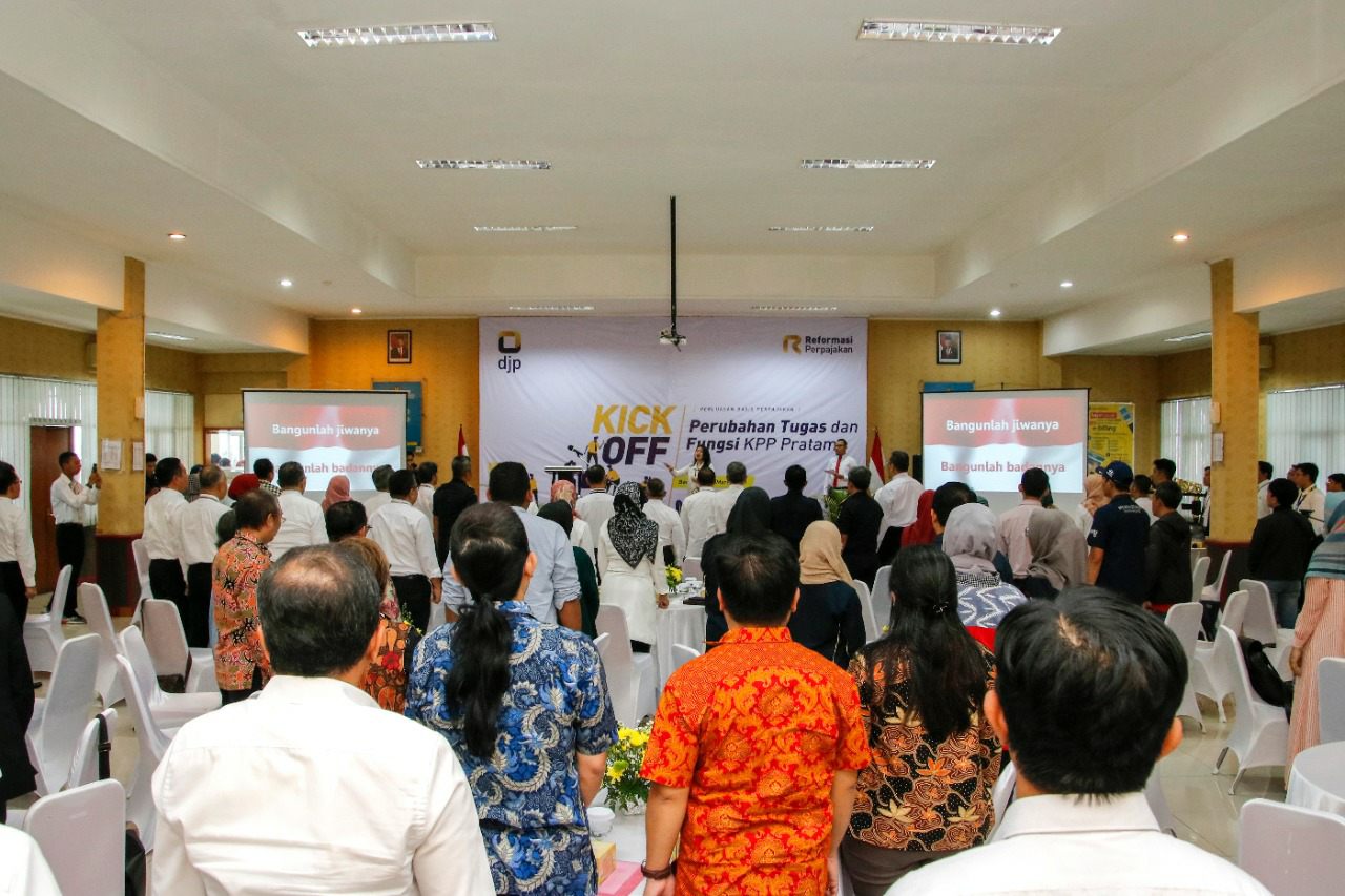 Kepala Kantor Wilayah Direktorat Jenderal Pajak Jawa Barat I Neilmaldrin Noor membuka acara Kick Off Perubahan Tugas dan Fungsi KPP Pratama yang bertempat di Aula KPP Pratama Bandung Cicadas (Senin, 2/3).