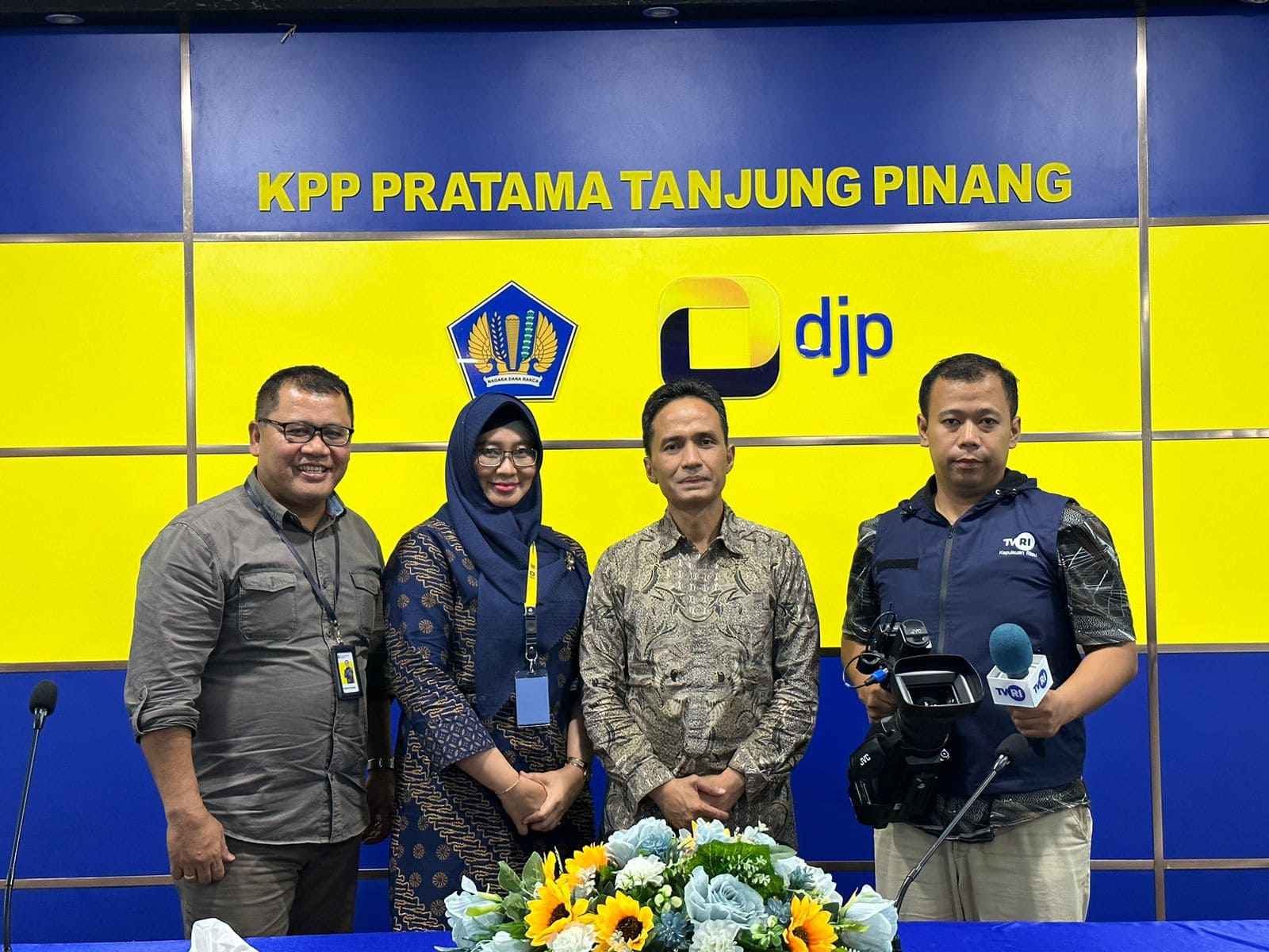 Kantor Pelayanan Pajak (KPP) Pratama Tanjung Pinang menerima kunjungan tim TVRI Stasiun Kepulauan Riau (Selasa, 8/3). Kepala TVRI Stasiun Kepulauan Riau Donny Putra dan tim disambut langsung oleh Kepala KPP Pratama Tanjung Pinang Rudianto Gurning.