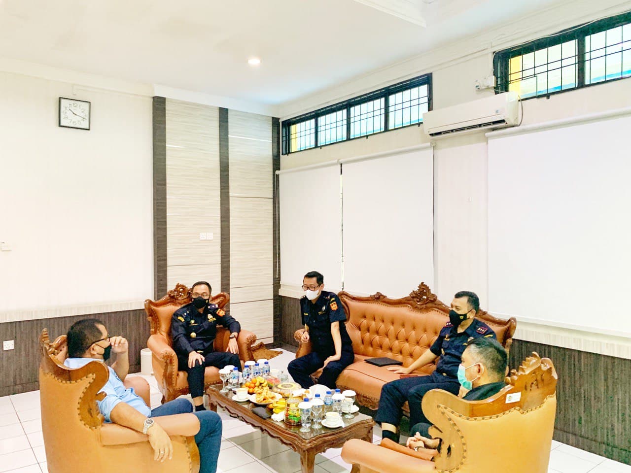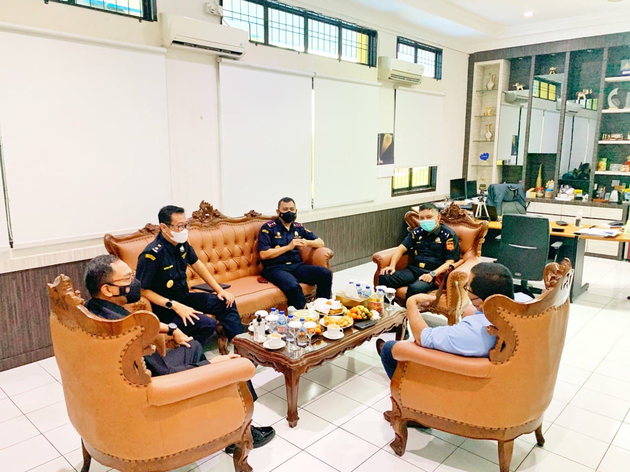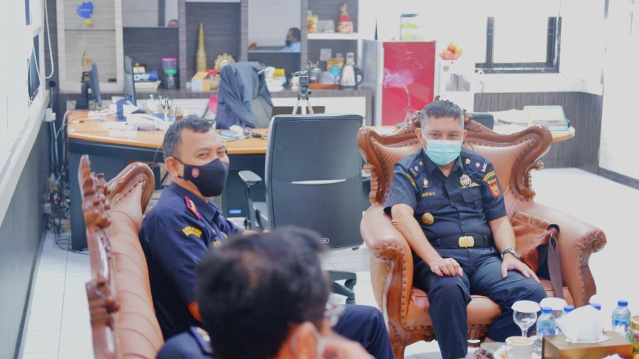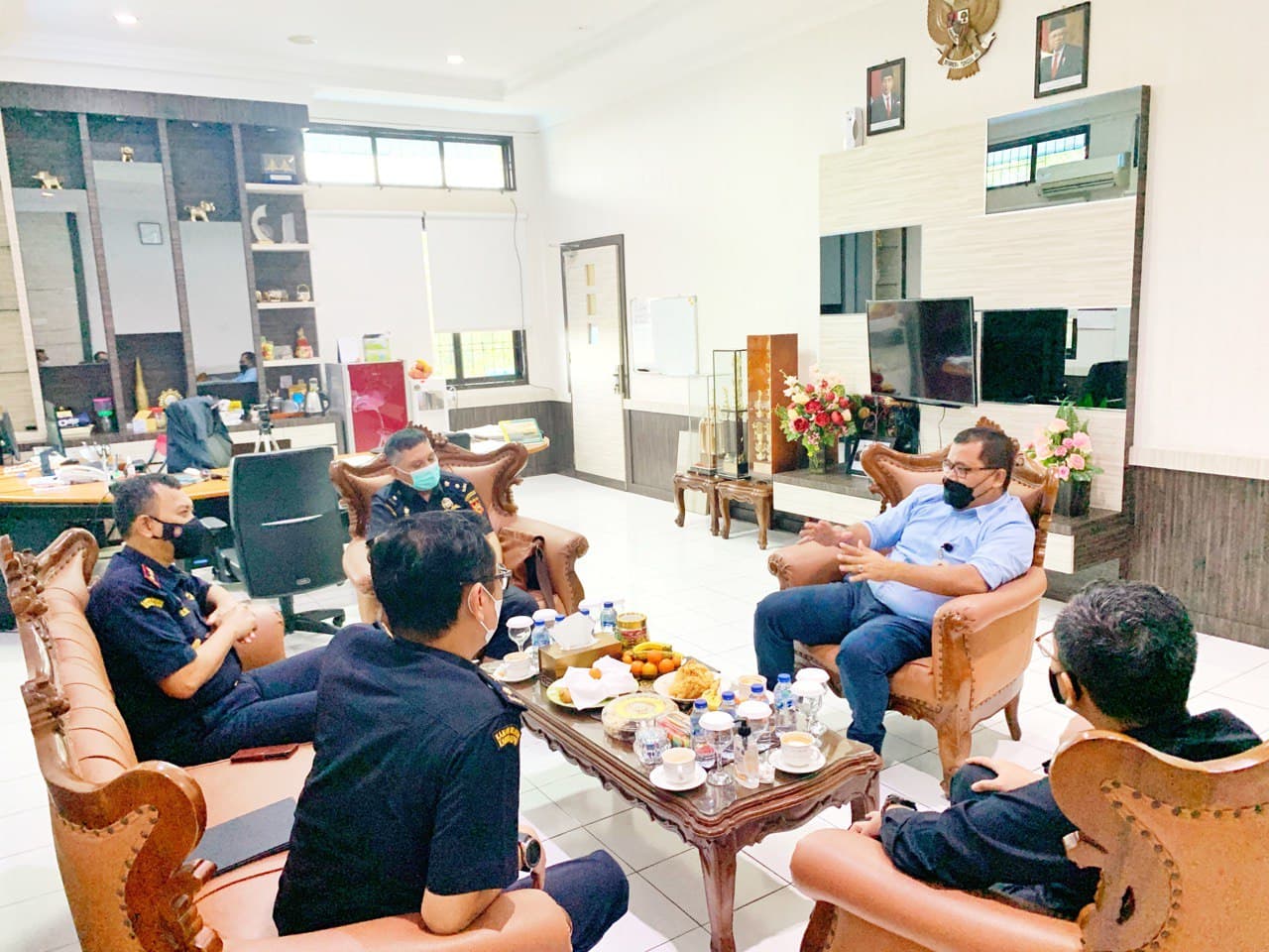 Kepala Kantor Pelayanan Pajak (KPP) Pratama Tanjung Pinang Rudianto Gurning menerima kunjungan jajaran pejabat Kantor Pelayanan dan Pengawasan Bea dan Cukai (KPPBC) Tipe Madya Pabeanan B Tanjungpinang di ruang kerjanya, Tanjung Pinang, Kepulauan Riau (Rabu, 15/12).