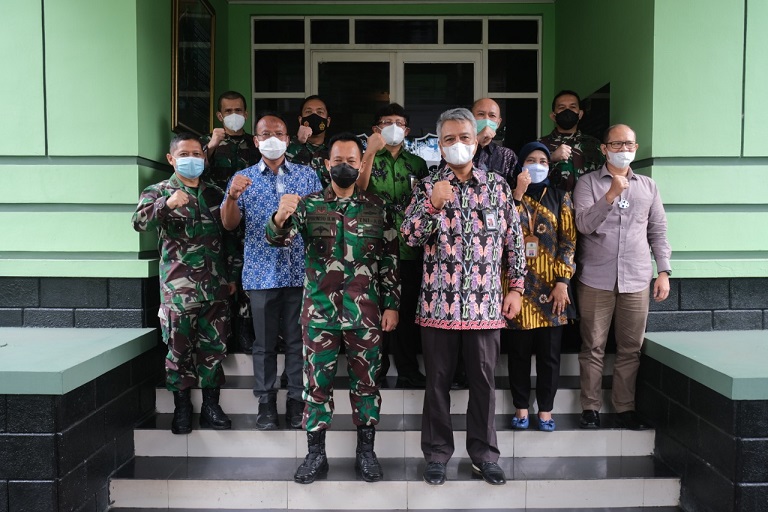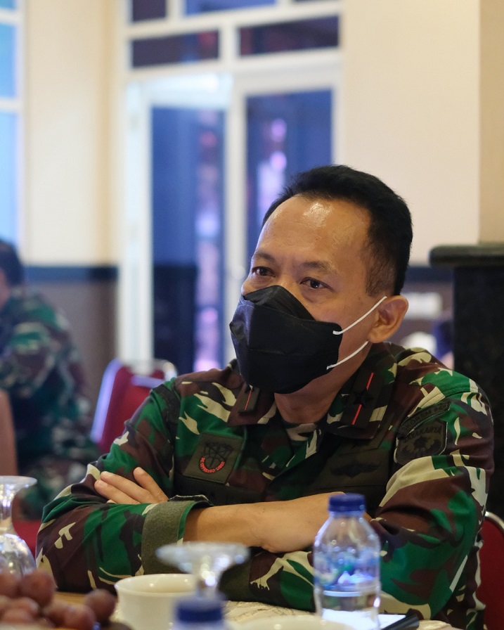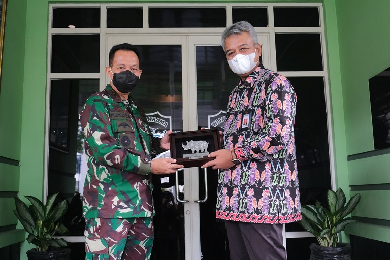 Kepala Kanwil DJP Banten Dionysius Lucas Hendrawan beserta Kepala KPP Pratama Cikupa dan Kepala KPP Pratama Kosambi bersilaturahmi dengan Komandan Komando Resor Militer (Danrem) 052 Wijayakarma Brigjen TNI Purwito Hadi Wardhono di aula Korem 052 Wijayakrama, Tangerang (Jumat, 19/3).