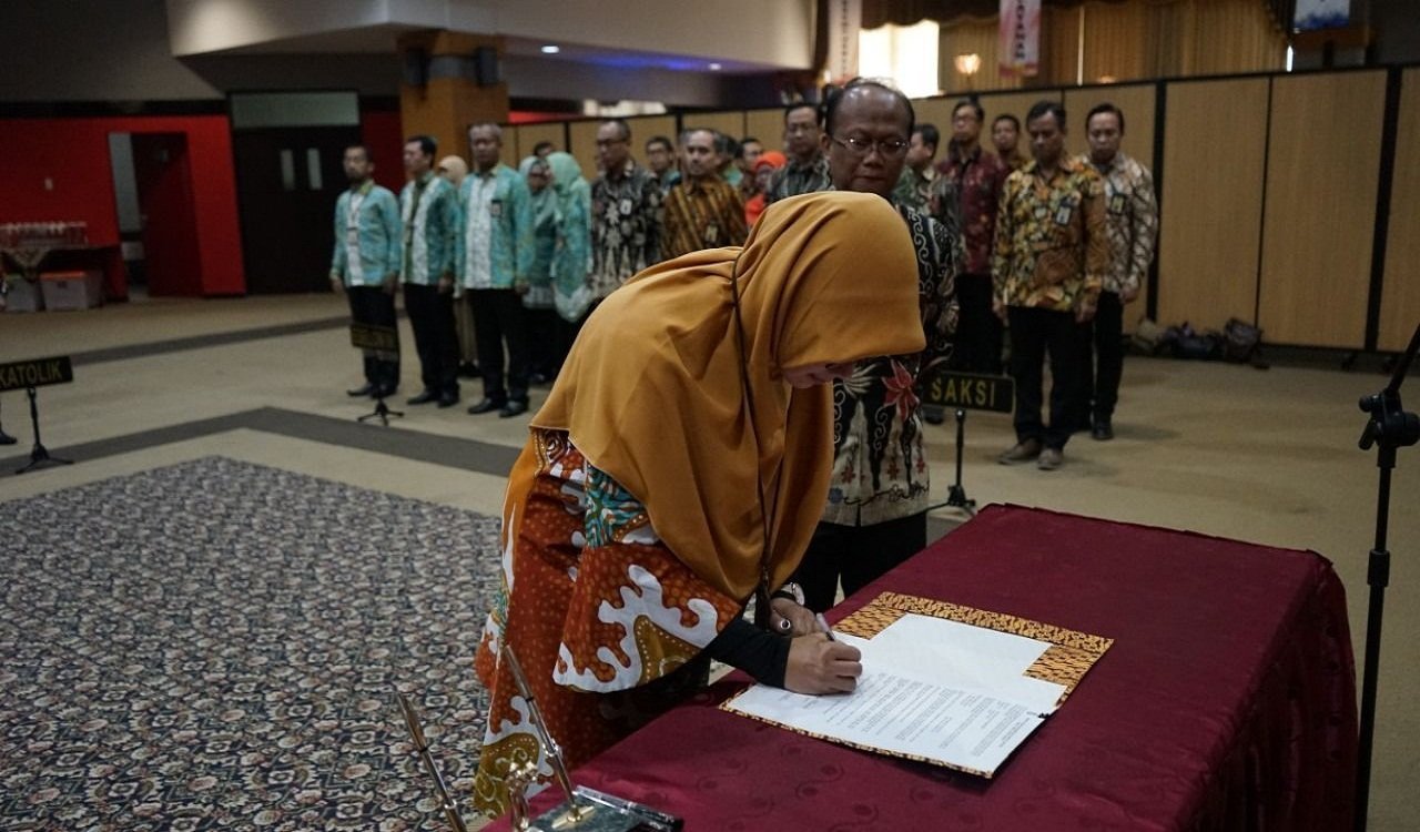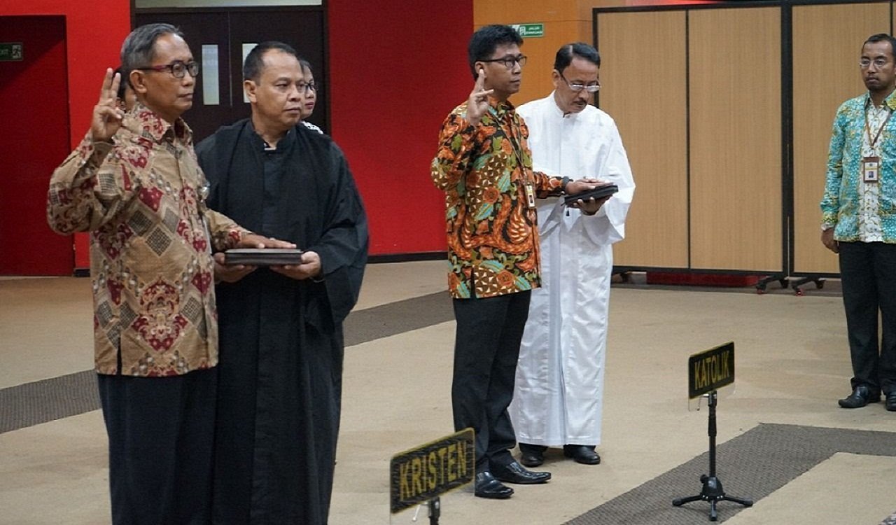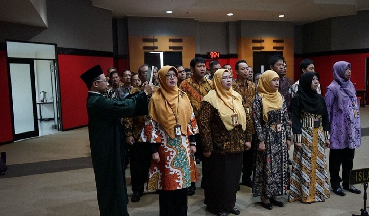 Kanwil DJP Jawa Timur II menggelar acara pelantikan dan pengambilan sumpah jabatan 97 Pejabat Fungsional dan Pengawas di Aula Kanwil DJP Jawa Timur II (Jumat, 11/10). Sebanyak 80 Pejabat Fungsional Pemeriksa Pajak dan Fungsional Penilai PBB serta 17 Pejabat Pengawas dilantik oleh Kepala Kanwil DJP Jawa Timur II Lusiani pada acara tersebut. Hadir pula seluruh Pejabat Eselon III dan Pejabat Eselon IV di lingkungan Kanwil DJP Jawa Timur II menyaksikan pelantikan maupun sebagai saksi.