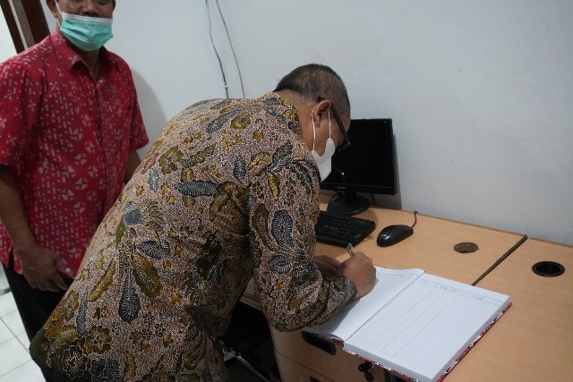 Kepala Kantor Wilayah DJP Jawa Tengah II Slamet Sutantyo dan Rektor Universitas Widya Dharma Klaten Prof. Dr. Triyono, M.Pd resmikan ruang tax center Universitas Widya Dharma Klaten (Rabu, 24/11).