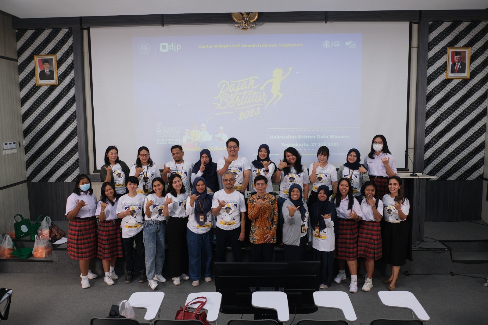 Kantor Wilayah Direktorat Jenderal Pajak Daerah Istimewa Yogyakarta (Kanwil DJP DIY) menyelenggarakan kegiatan Pajak Bertutur 2023 di Ruang Seminar Didaktos Universitas Kristen Duta Wacana (UKDW), Jalan Dr. Wahidin Sudirohusodo Kotabaru, Kecamatan Gondokusuman, Kota Yogyakarta, Provinsi Daerah Istimewa Yogyakarta (Kamis, 27/7).