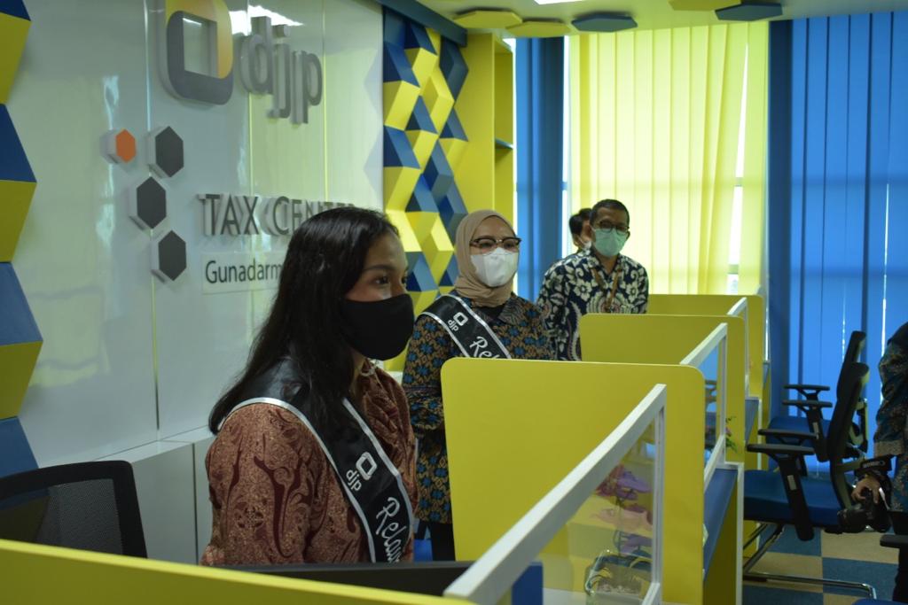 Kepala Kantor Wilayah DJP Jawa Barat III Catur Rini Widosari dan Rektor Universitas Gunadarma E.S. Margianti meresmikan Layanan Diluar Kantor (LDK) KPP Pratama Depok Cimanggis yang berada di Tax Center Universitas Gunadarma, Kota Depok (Selasa, 23/3).