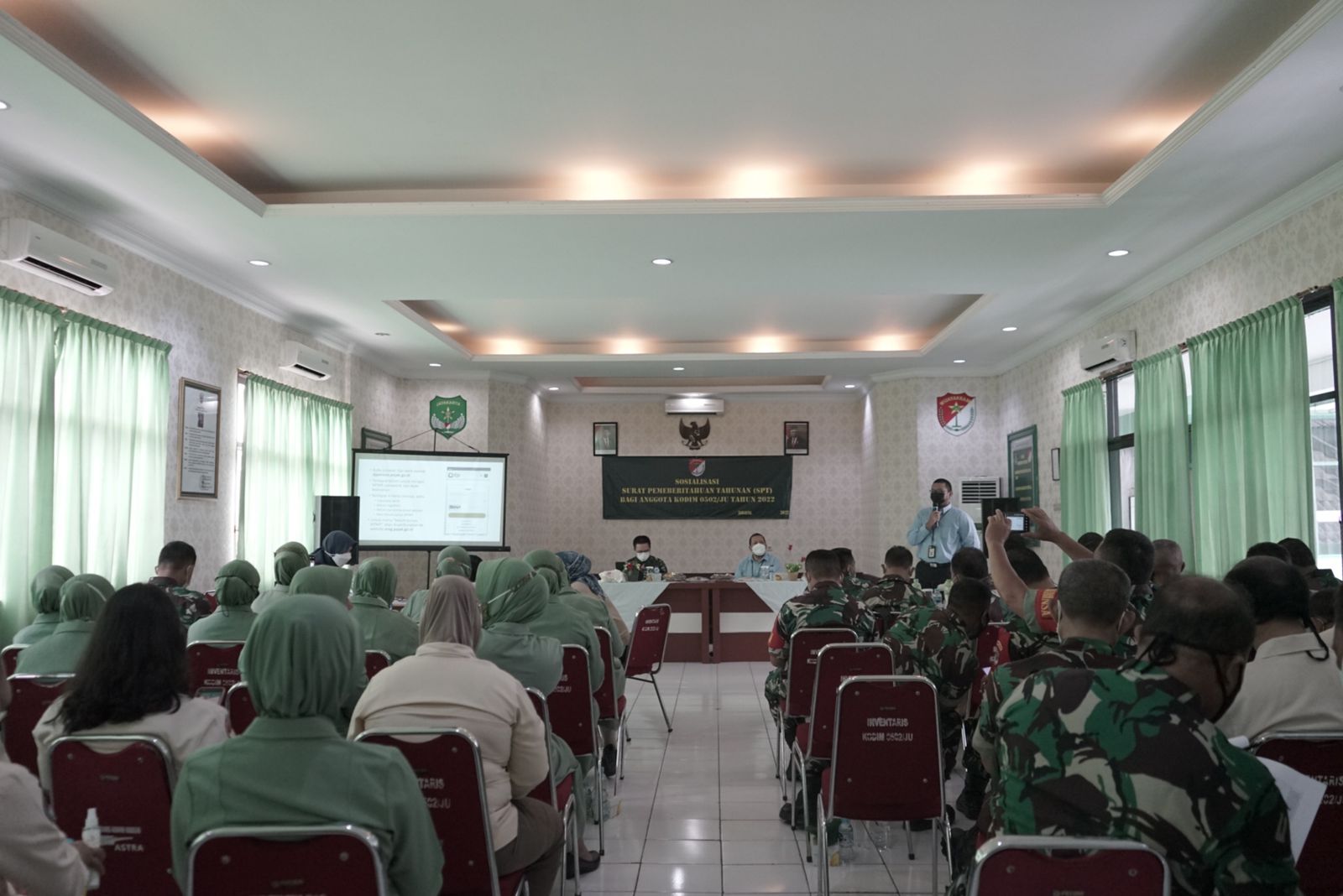 Kantor Wilayah Direktorat Jenderal Pajak (Kanwil DJP) Jakarta Utara bekerjasama dengan Komando Distrik Militer 0502/Jakarta Utara melaksanakan sosialisasi pengisian SPT Tahunan PPh Orang Pribadi di Jakarta (Rabu, 30/3).