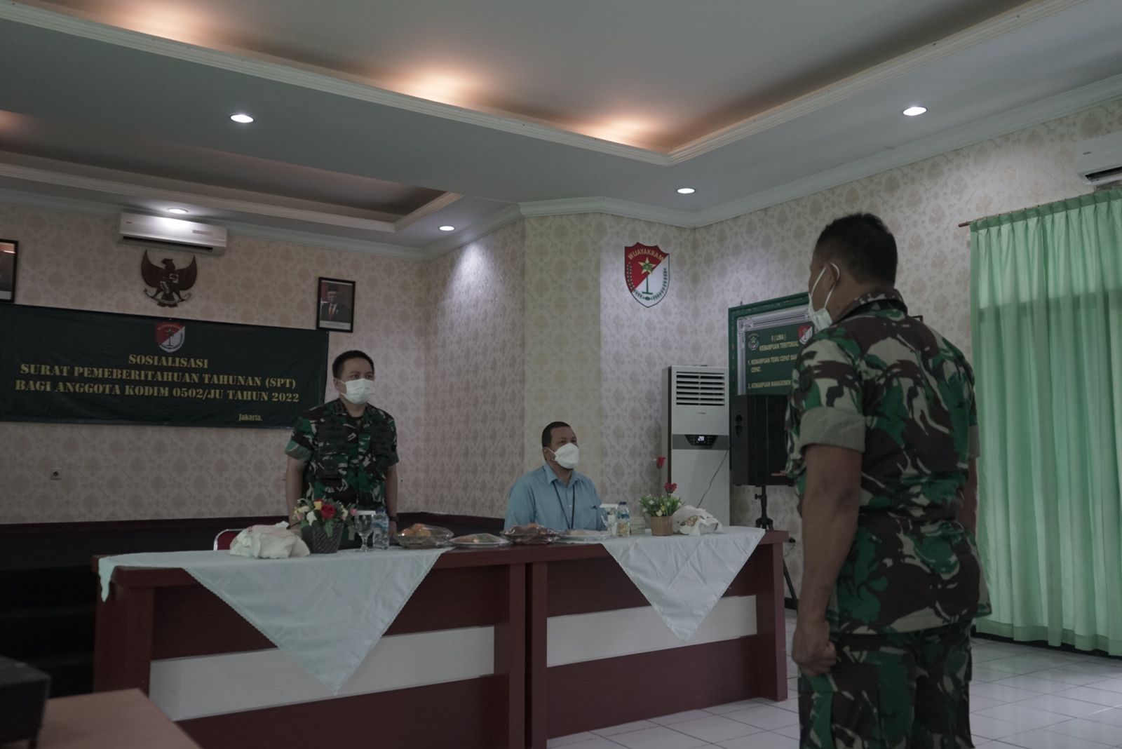 Kegiatan sosialisasi dihadiri Komandan Kodim 0502/Jakarta Utara Letnan Kolonel (Inf) Frega Ferdinand Wenas Inkiriwang, Kantor Wilayah DJP Jakarta Utara diwakili Roberto Ritonga selaku Penyuluh Pajak Ahli Madya. Peserta kegiatan adalah seluruh anggota Kodim 0502/Jakarta Utara serta perwakilan seluruh Koramil di wilayah Jakarta Utara.