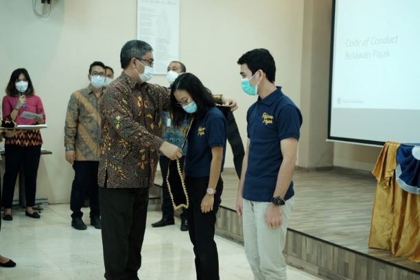 33 Relawan Pajak dari Empat Perguruan Tinggi di wilayah Kanwil Direktorat Jenderal Pajak (DJP) Sumatera Utara II mengikuti prosesi Pengukuhan Relawan Pajak di Aula Integritas Kanwil DJP Sumatera Utara II, Pematangsiantar (Selasa, 2/3). Pengukuhan dilakukan langsung oleh Kepala Kantor Wilayah DJP Sumatera Utara II Anggrah Warsono.