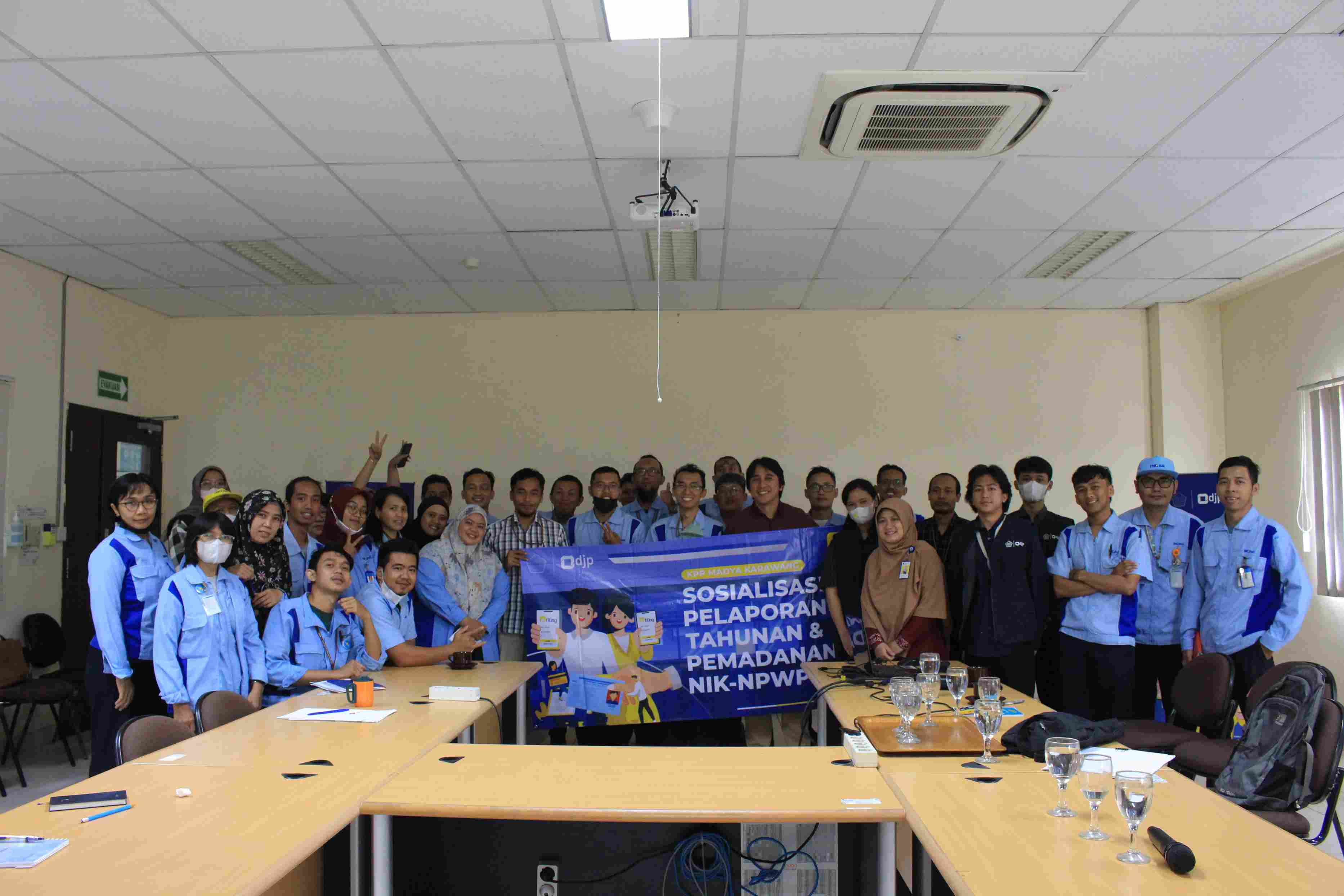 Tim Penyuluh Kantor Pelayanan Pajak (KPP) Madya Karawang bersama dengan Relawan Pajak Tax Center UNSIKA melaksanakan asistensi pemadanan Nomor Induk Kependudukan (NIK) menjadi Nomor Pokok Wajib Pajak (NPWP) berdasarkan Peraturan Menteri Keuangan (PMK) Nomor 112/PMK.03/2022 tentang NPWP Bagi Wajib Pajak Orang Pribadi, Wajib Pajak Badan, dan Wajib Pajak Instansi Pemerintah dan pelaporan Surat Pemberitahuan (SPT) Tahunan Pajak Penghasilan (PPh) Orang Pribadi ke PT Inoac Polytechno Indonesia, Kab. Karawang (Kamis, 23/02).