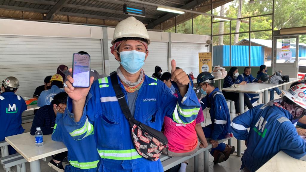 Kantor Pelayanan Pajak (KPP) Pratama Batam Utara melakukan asistensi pengisian dan pelaporan Surat Pemberitahuan (SPT) Tahunan tahun pajak 2021 melalui e-filing kepada Pegawai McDermott Indonesia di Batam, Kepulauan Riau (Sabtu, 26/3).
