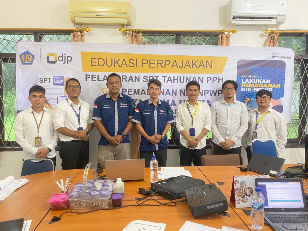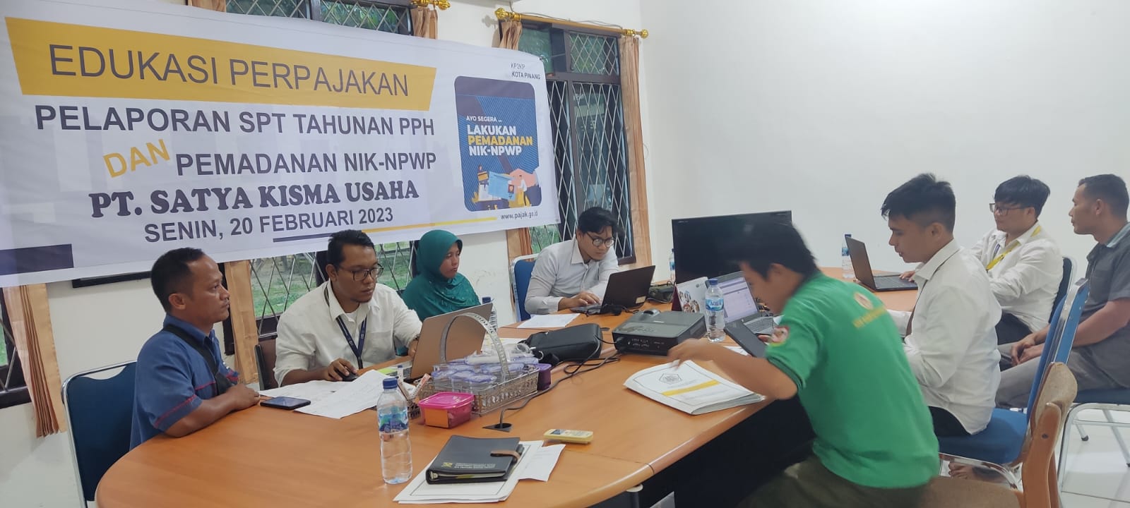Kantor Pelayanan, Penyuluhan dan Konsultasi Perpajakan (KP2KP) Kota Pinang mengadakan edukasi perpajakan Surat Pemberitahuan (SPT) Tahunan dan Pemadanan Nomor Induk Kependudukan (NIK) dan Nomor Pokok Wajib Pajak (NPWP) kepada PT Satya Kisma Usaha, Kabupaten Labuhanbatu Selatan (Senin, 20/2).