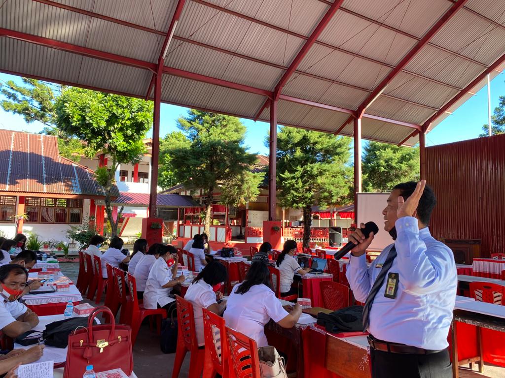 Kantor Pelayanan, Penyuluhan, dan Konsultasi Perpajakan (KP2KP) Tondano memenuhi undangan Dinas Pendidikan dan Kebudayaan Kabupaten Minahasa untuk mengisi kegiatan Bimbingan Teknis Perpajakan terkait penyusunan Rencana Kegiatan dan Anggaran Sekolah (RKAS) tahun anggaran 2021 di Aula SMP Negeri 1 Tondano (Rabu, 18/11). Acara dilaksanakan selama empat hari sejak Selasa, 17 November 2020.