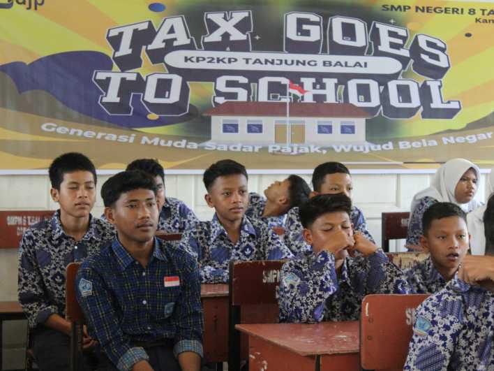 Kantor Pelayanan Pajak (KPP) Pratama Kisaran bersama Kantor Pelayanan, Penyuluhan, dan Konsultasi Perpajakan (KP2KP) Tanjung Balai melaksanakan kegiatan Tax Goes To School (TGTS) bersama Sekolah Menengah Pertama (SMP) Negeri 8 Tanjung Balai di SMP Negeri 8 Tanjung Balai, Kapias Pulau Buaya, Kota Tanjung Balai (Kamis, 30/5).