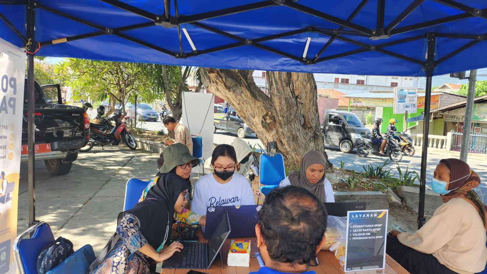 Kantor Pelayanan Pajak (KPP) Pratama Palu mengadakan kegiatan pojok pajak di Sinar Galesong Mandiri, Kota Palu, Sulawesi Tengah (Senin, 27/2). Kegiatan yang berlangsung hingga 3 Maret 2023 ini bertujuan untuk memberikan kemudahan kepada wajib pajak dalam mendapatkan pelayanan asistensi pelaporan Surat Pemberitahuan (SPT) Tahunan dan pemadanan Nomor Induk Kependudukan (NIK) menjadi Nomor Pokok Wajib Pajak (NPWP).