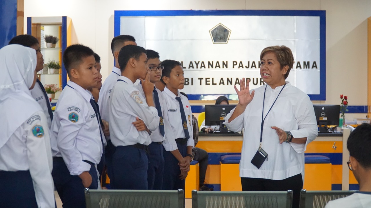 Kantor Pajak Jambi Telanaipura menerima kedatangan siswa dan siswi dari SMP Negeri 7 Kota Jambi (Senin, 27/1). Siswa-siswi yang ingin mengenal pajak lebih dekat ini diajak berkeliling ruangan kantor dan berkenalan dengan para pegawai.