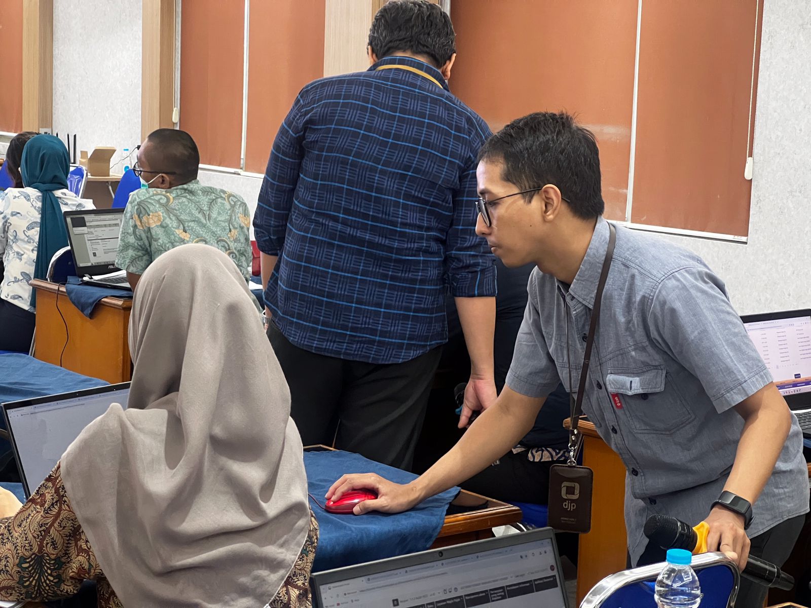 Kegiatan dilanjutkan pemaparan materi serta simulasi purwarupa aplikasi berupa materi perubahan data wajib pajak, deposit pajak, pembayaran pajak, faktur pajak, e-bupot, Surat Pemberitahuan Masa PPh/PPN serta SPT Tahunan serta diskusi dengan peserta mengenai kendala atau kesulitan dalam aplikasi.