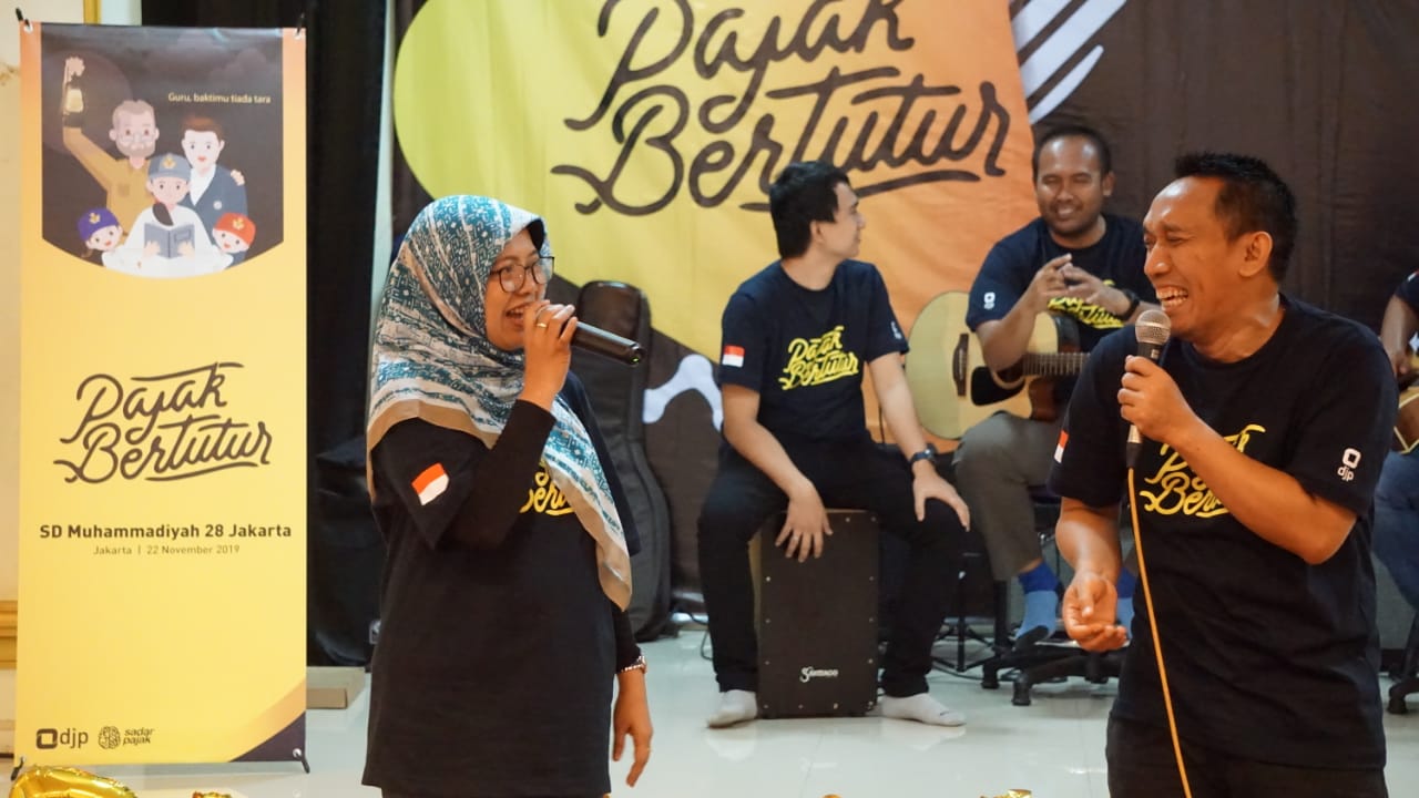 Kegiatan Pajak Bertutur di SD Muhammadiyah 28 Jakarta ini dimeriahkan dengan hiburan dari 4coustic yaitu band acoustic milik KPP PMA Empat, melalui acara ini pegawai KPP PMA Empat yang telah ditunjuk sebagai panitia mengajak anak-anak SD Muhammadiyah 28 mengenal pajak melalui kegiatan belajar dan bermain, terdapat berbagai permainan yang dilakukan seperti membuat majalah dinding (mading) yang berisi mengenai penyaluran dana pajak yang telah dikumpulkan dalam APBN dan role play mengenai pegawai pajak. Acara ditutup dengan penempelan stiker yang berisikan cita-cita pada pohon cita-cita.