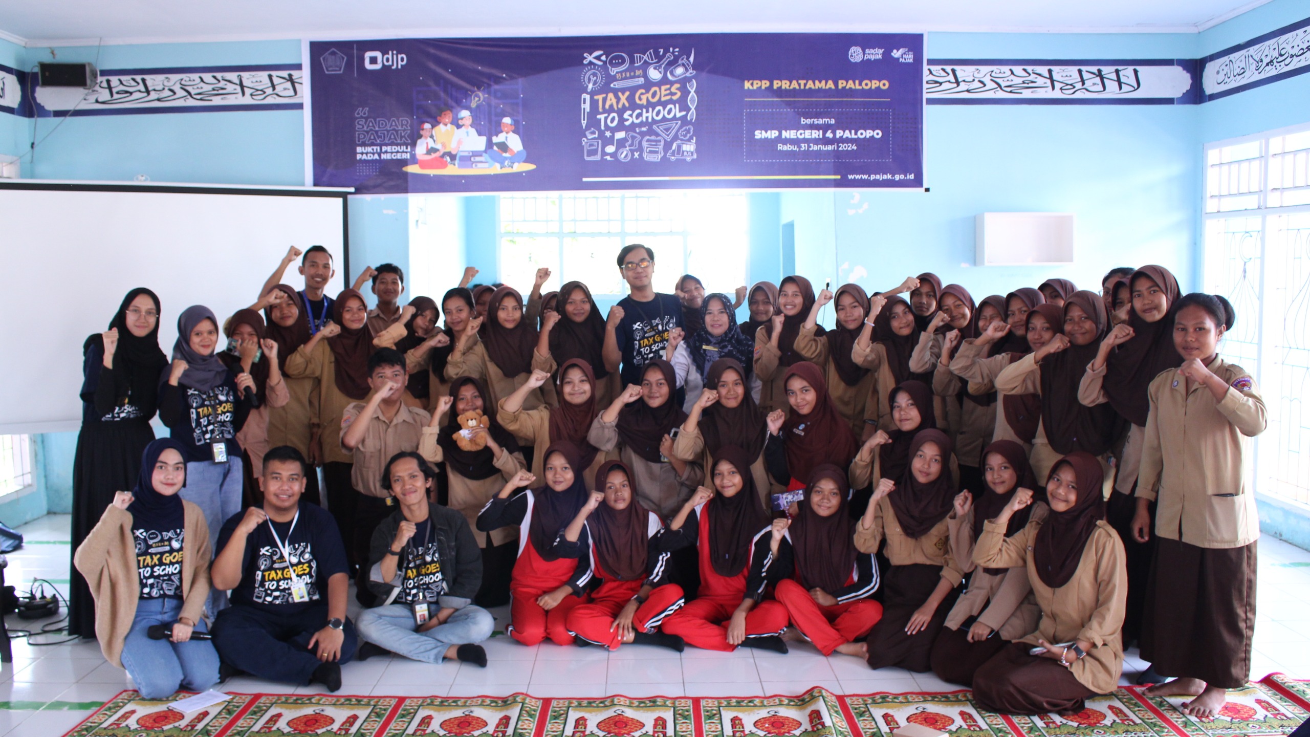 Kantor Pelayanan Pajak (KPP) Pratama Palopo menyelenggaraka Tax Goes To School (TGTS) bersama Sekolah Menengah Pertama (SMP) Negeri 4 Palopo di Jalan Andi Kambo, Salekoe, Wara Timur, Palopo (Rabu, 30/1). Kegiatan ini dihadiri oleh perwakilan guru dan 40 peserta didik kelas. TGTS ini mengusung tema “Sadar Pajak, Bukti Peduli Pada Negeri” dilaksanakan dalam rangka memperkenalkan pentingnya perpajakan untuk generasi penerus bangsa.