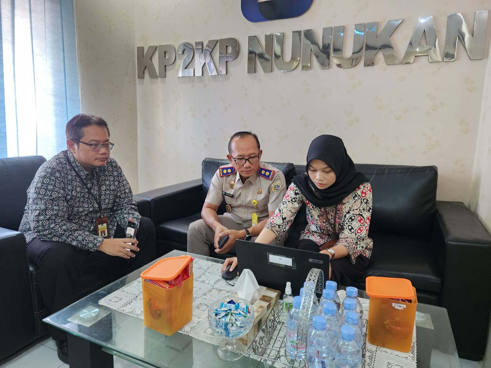 Kantor Pelayanan Penyuluhan dan Konsultasi Perpajakan (KP2KP) Nunukan kedatangan tamu dari Badan Pertanahan Nasional Kabupaten Nunukan untuk berkonsultasi langsung mengenai prosesi pemadanan NIK-NPWP (Selasa, 28/3). Kepala KP2KP Nunukan Ari Saptono mengajak Kepala BPN Kabupaten Nunukan Jhon Palapa untuk berdiskusi bersama di dalam Ruang Rapat KP2KP Nunukan, Kalimantan Utara.